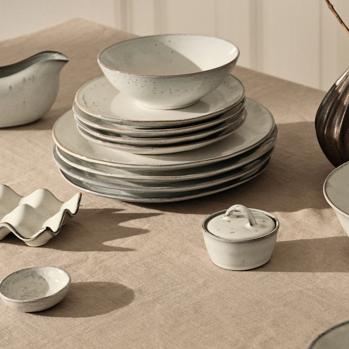 Die unregelmäßige Glasur erinnert an den Sand, der über den Strand fegt und die windgepeitschten Wellen des nordischen Meeres. So schafft man eine skandinavische Note auf dem Esstisch und erzeugt echtes Urlaubsfeeling.