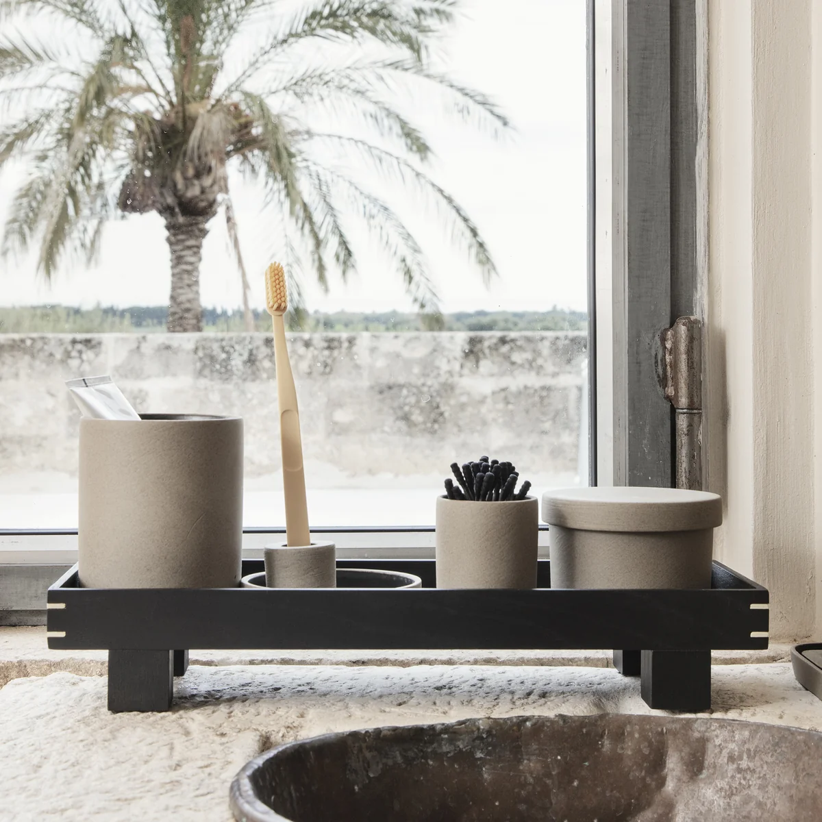 Die Aufbewahrungsdose mit Deckel ist in verschiedenen Größen erhältlich, wird aus unbehandeltem Porzellan hergestellt und hat eine glasierte Innenseite. Das Steingutdesign sieht in Kombination mit den anderen Badezimmerartikeln aus der Bon Accessoires Serie besonders elegant aus.