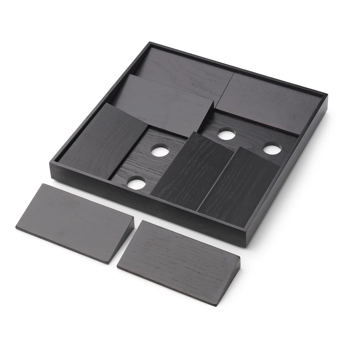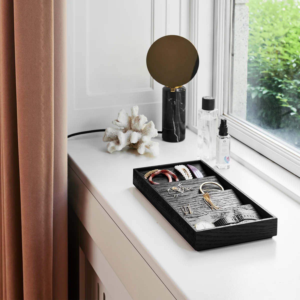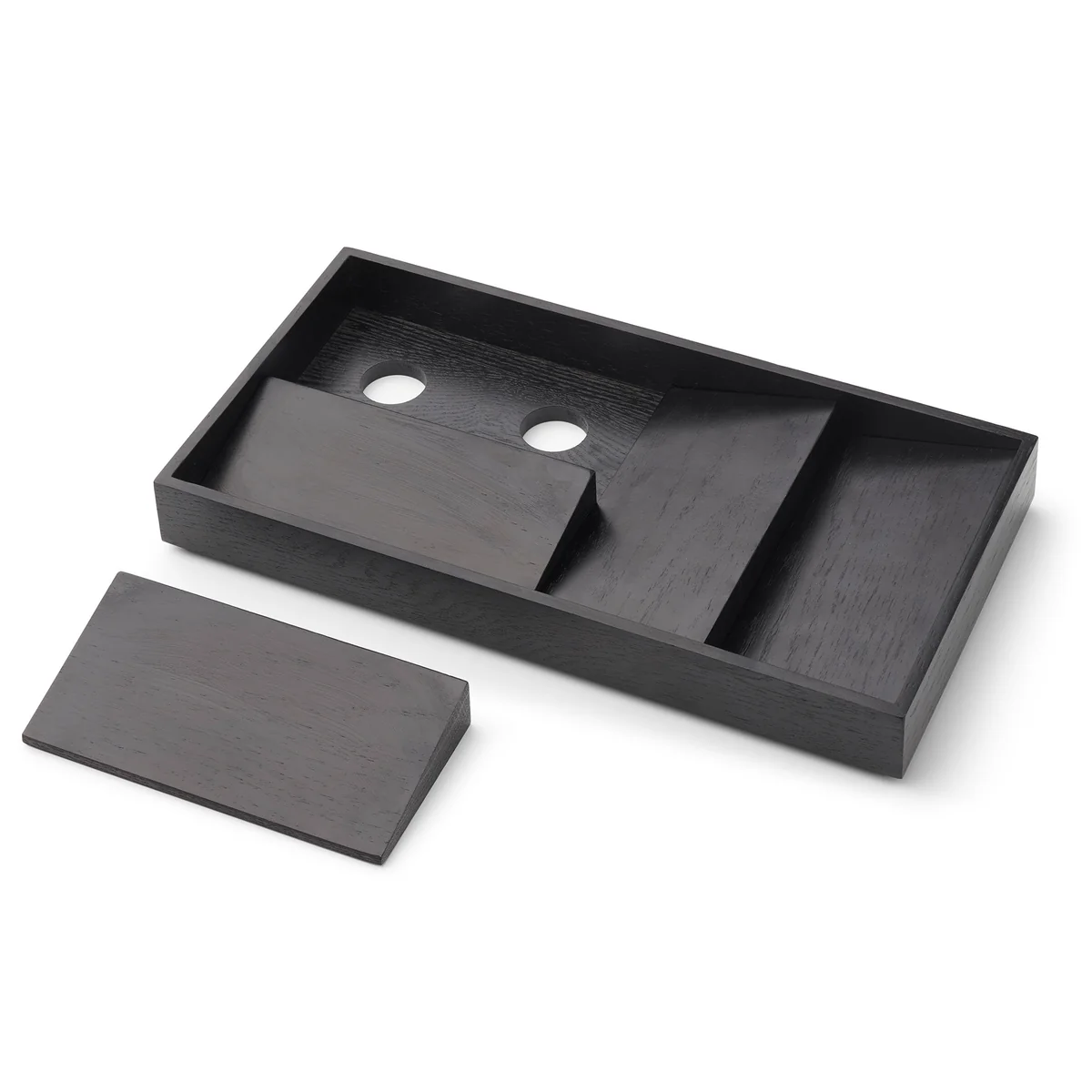 Inspiriert von den Sanddünen in der Landschaft hinter Valencia, wurde der Duune Organizer von Gejst entworfen. Der Organizer besteht aus einem Rahmen aus Eichen- oder Eschenholz, in dem mehrere Holzklötze angeordnet werden. Diese schaffen eine Vielzahl kleiner Ablagen für Schmuck und können individuell arrangiert werden. Der Duune Organizer eignet sich in elegantem Schwarz oder Naturton ideal für die stilvolle Aufbewahrung von Schmuck und Uhren. Der Kasten von Gejst kann auf einer Kommode im Schlafzimmer oder in einem Regal im Badezimmer platziert werden. Alternativ sorgt Duune auch im Büro auf dem Schreibtisch für Ordnung.