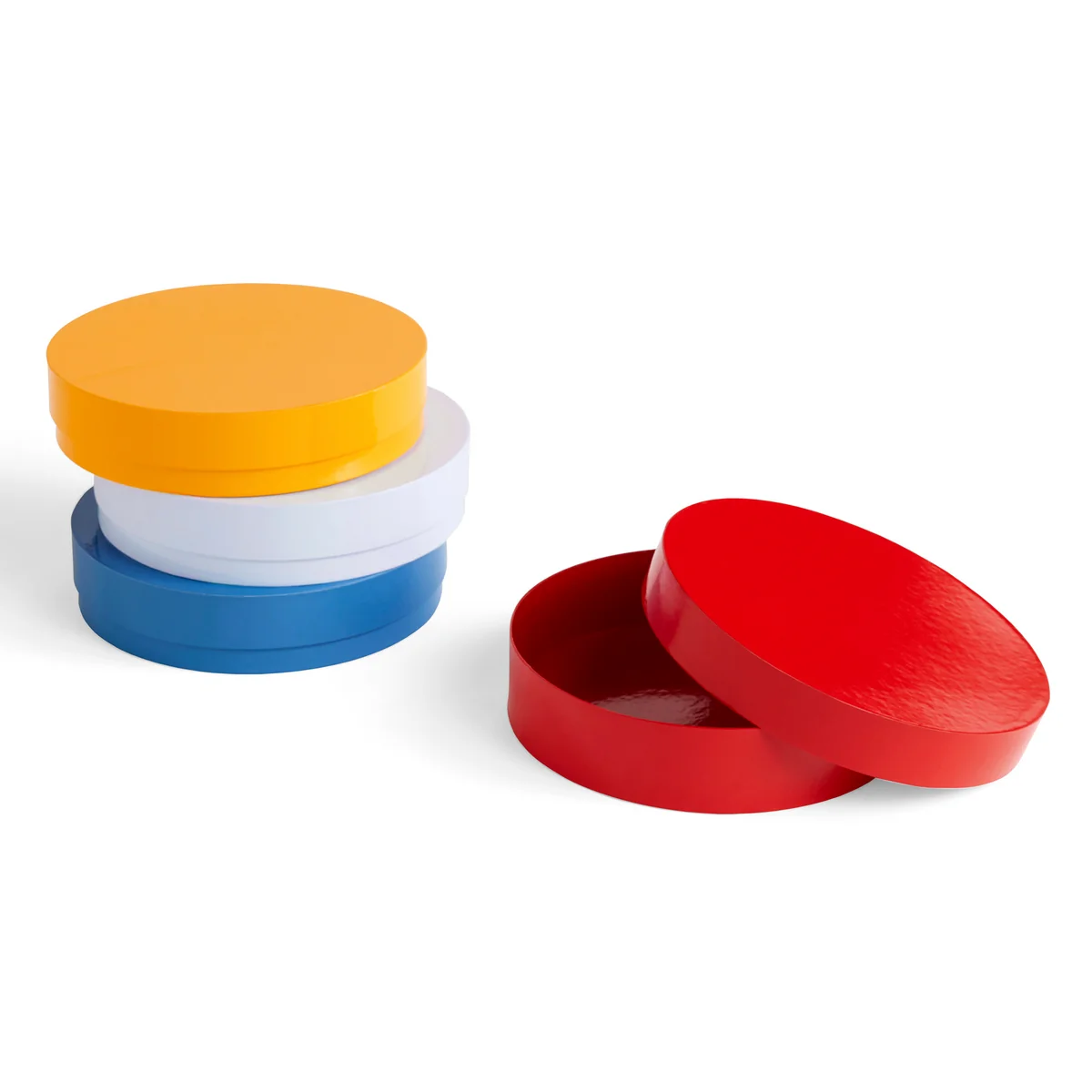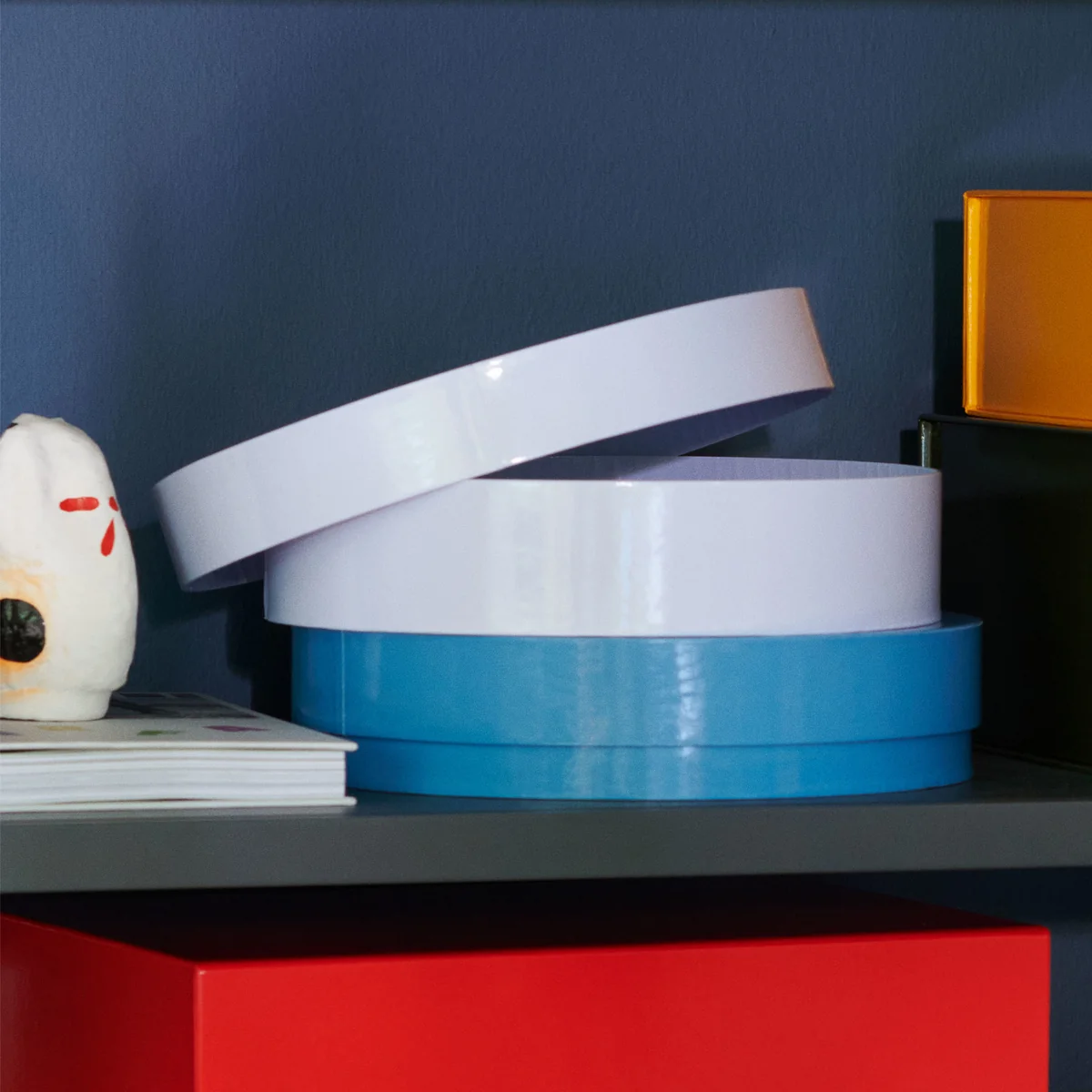 Die Colour Aufbewahrungsboxen formen eine Serie von vielseitigen und dekorativen Aufbewahrungsbehältern. Hergestellt aus einer strapazierfähigen, extra dicken FSC-zertifizierten Kartonmischung mit einem schönen glänzenden Finish, können die rechteckigen Boxen zum Organisieren und Aufbewahren einer Vielzahl von Gegenständen auf Schreibtischen, Regalen oder Schränken verwendet werden. Die runden Aufbewahrungsboxen sind in unterschiedlichen Ausführungen erhältlich.