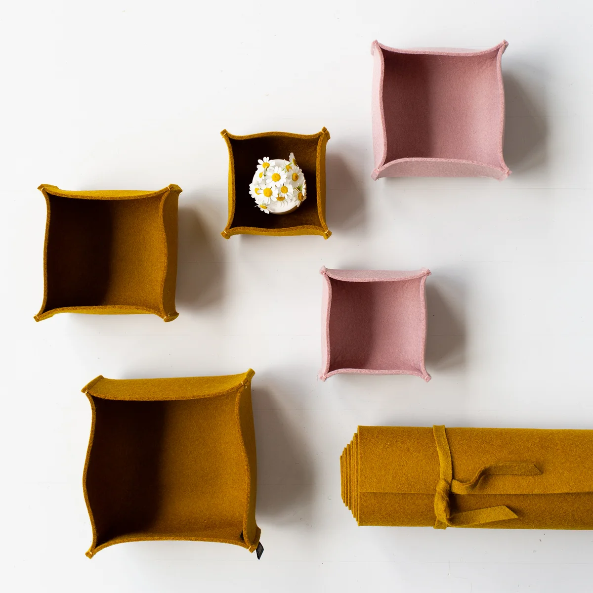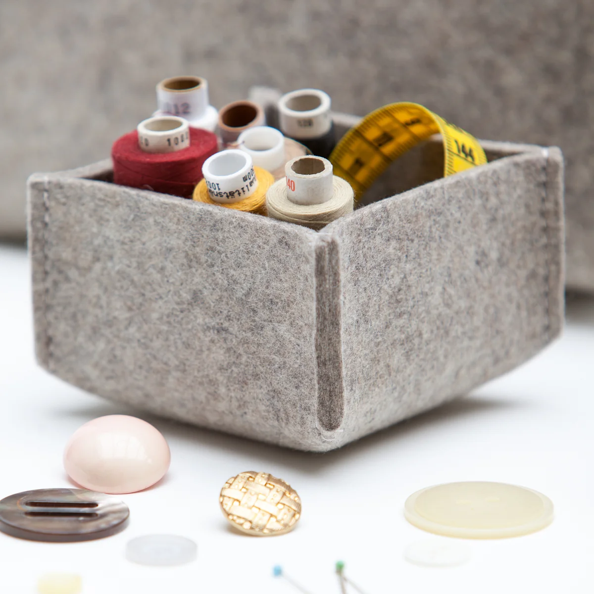 Dekorativ im Eingangsbereich platziert können in den Filzboxen Schlüssel und Briefe abgelegt werden, aber auch Schmuck, Nähgarn und allerlei andere Kleinigkeiten können in den Filzkörben von Hey Sign dekorativ verstaut werden.
