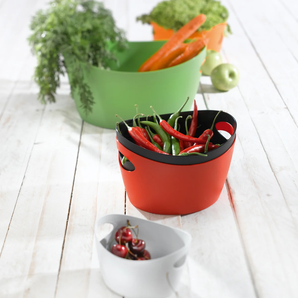 Aus hochwertigem Polypropylen gefertigt, verspricht Bottichelli dauerhafte Ordnung. Das Material ist recycelbar und damit ökologisch vorbildlich, weil umweltschonend. Und wie bei allen Produkten von Koziol gilt auch für den Zuber: "100 Prozent Made in Odenwald!"