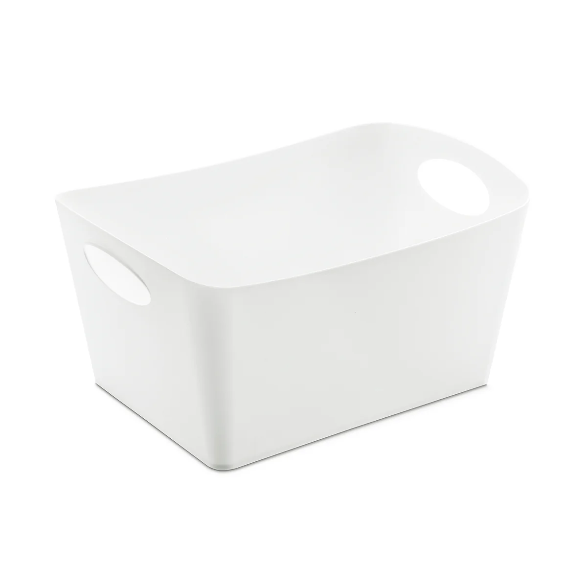 Die recycelten Boxxx Aufbewahrungsboxen von Koziol bringen Ordnung in die eigenen vier Wände. Je nach Größe eignen sich die Boxen zum Aufbewahren von Kosmetik und Haarpflegeprodukten im Badezimmer, zum Sortieren der Wäsche, als praktischer Wäschekorb oder alternativ zum Sammeln von Altglas. Die Einsatzmöglichkeiten sind vielfältig. Dabei sind die Ordnungshelfer auch sehr praktisch. In den Größen S, M und L passen jeweils zwei der Boxen immer in die nächst größere Variante. Die kleinere Varianten fügen sich durch ihre rechteckige Form zudem toll in Schränke oder auf Regale ein. Mithilfe der Grifflöcher können die Boxen von Koziol leicht entnommen und transportiert werden.