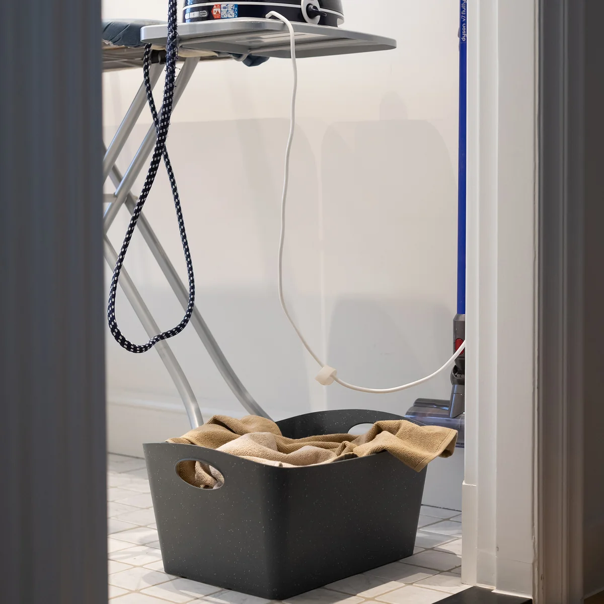 Die recycelten Boxxx Aufbewahrungsboxen von Koziol bringen Ordnung in die eigenen vier Wände. Je nach Größe eignen sich die Boxen zum Aufbewahren von Kosmetik und Haarpflegeprodukten im Badezimmer, zum Sortieren der Wäsche, als praktischer Wäschekorb oder alternativ zum Sammeln von Altglas. Die Einsatzmöglichkeiten sind vielfältig. Dabei sind die Ordnungshelfer auch sehr praktisch. In den Größen S, M und L passen jeweils zwei der Boxen immer in die nächst größere Variante. Die kleinere Varianten fügen sich durch ihre rechteckige Form zudem toll in Schränke oder auf Regale ein. Mithilfe der Grifflöcher können die Boxen von Koziol leicht entnommen und transportiert werden.