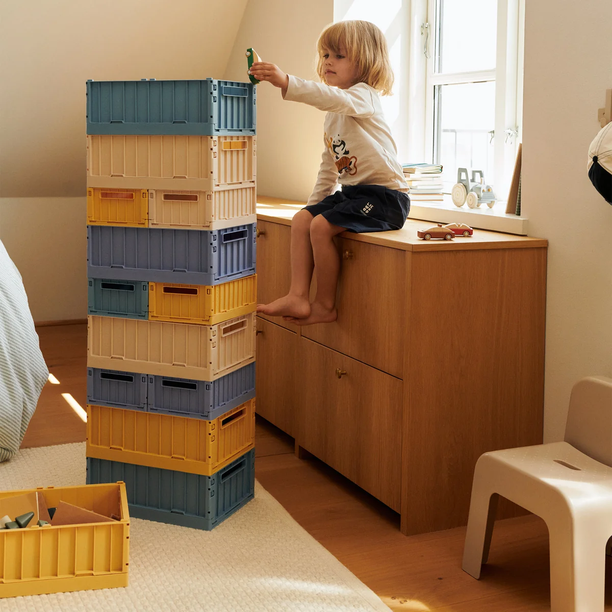 Die Weston Aufbewahrungsbox von LIEWOOD ist die perfekte Ergänzung für jeden stilvollen Haushalt. Mit ihrem schlichten, skandinavischen Design und der hochwertigen Verarbeitung fügt sie sich nahtlos in jedes Wohnambiente ein. Diese Box ist nicht nur ein ästhetisches Highlight, sondern auch äußerst funktional. Sie bietet ausreichend Stauraum für Spielzeug, Kleidung oder andere Alltagsgegenstände und hilft dabei, Ihr Zuhause aufgeräumt und organisiert zu halten. Hergestellt aus umweltfreundlichem und strapazierfähigem Material, steht die Weston Aufbewahrungsbox für Nachhaltigkeit und Langlebigkeit. Mit ihrem zeitlosen Charme ist sie eine Bereicherung für jeden Raum und ein Must-Have für Eltern, die auf der Suche nach stilvollen Aufbewahrungslösungen für ihre Kinder sind.