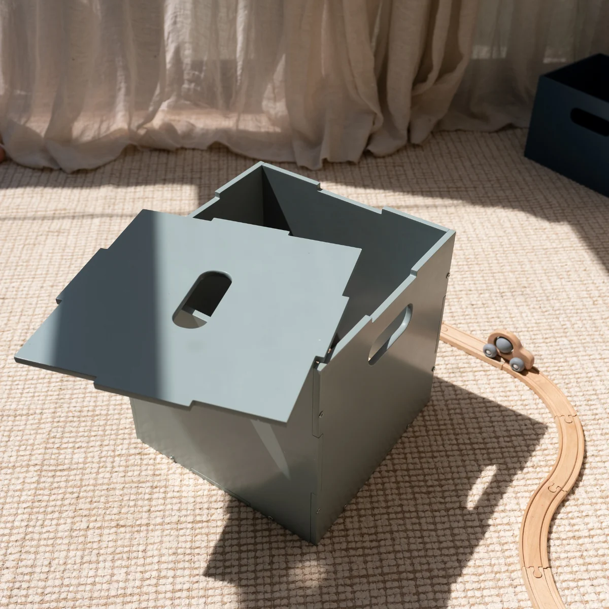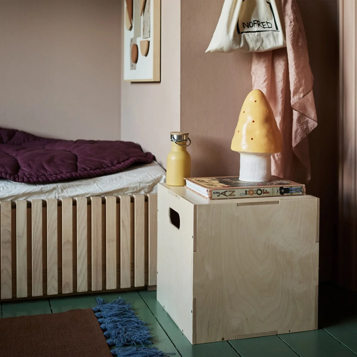 Unter der oberen, abnehmbaren Platte der Box verbirgt sich viel Stauraum für Spielzeug, Bücher, Decken und andere Gegenstände. Cube ist also ein toller Helfer, wenn es um das Aufräumen und das Halten von Ordnung geht. Dabei findet die Box im Kinderzimmer gleichermaßen Verwendung wie im Wohnzimmer oder in einem Abstellraum.