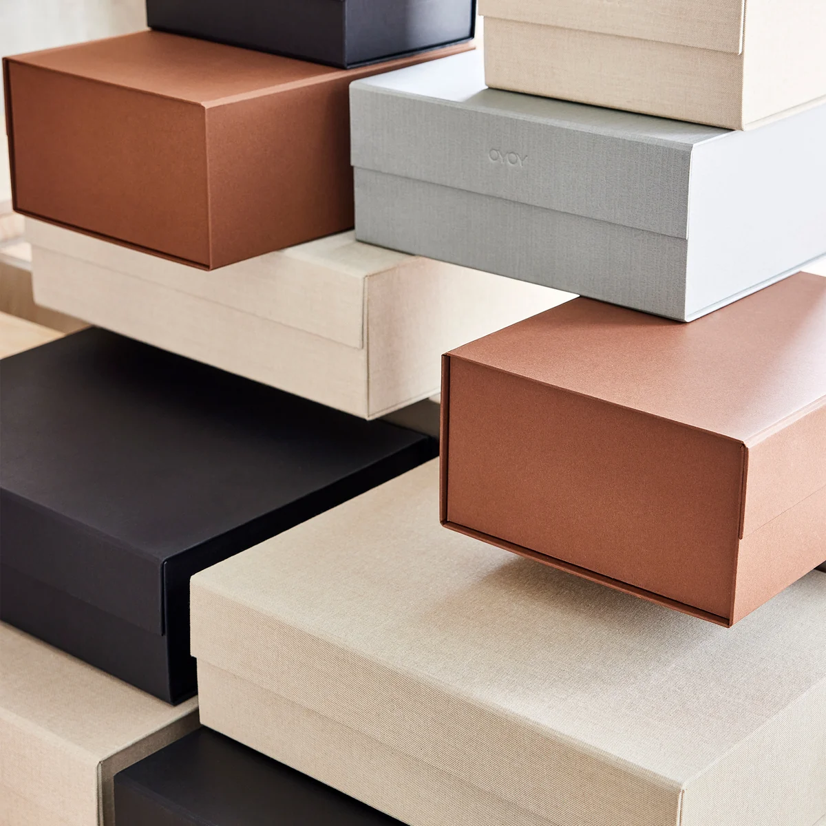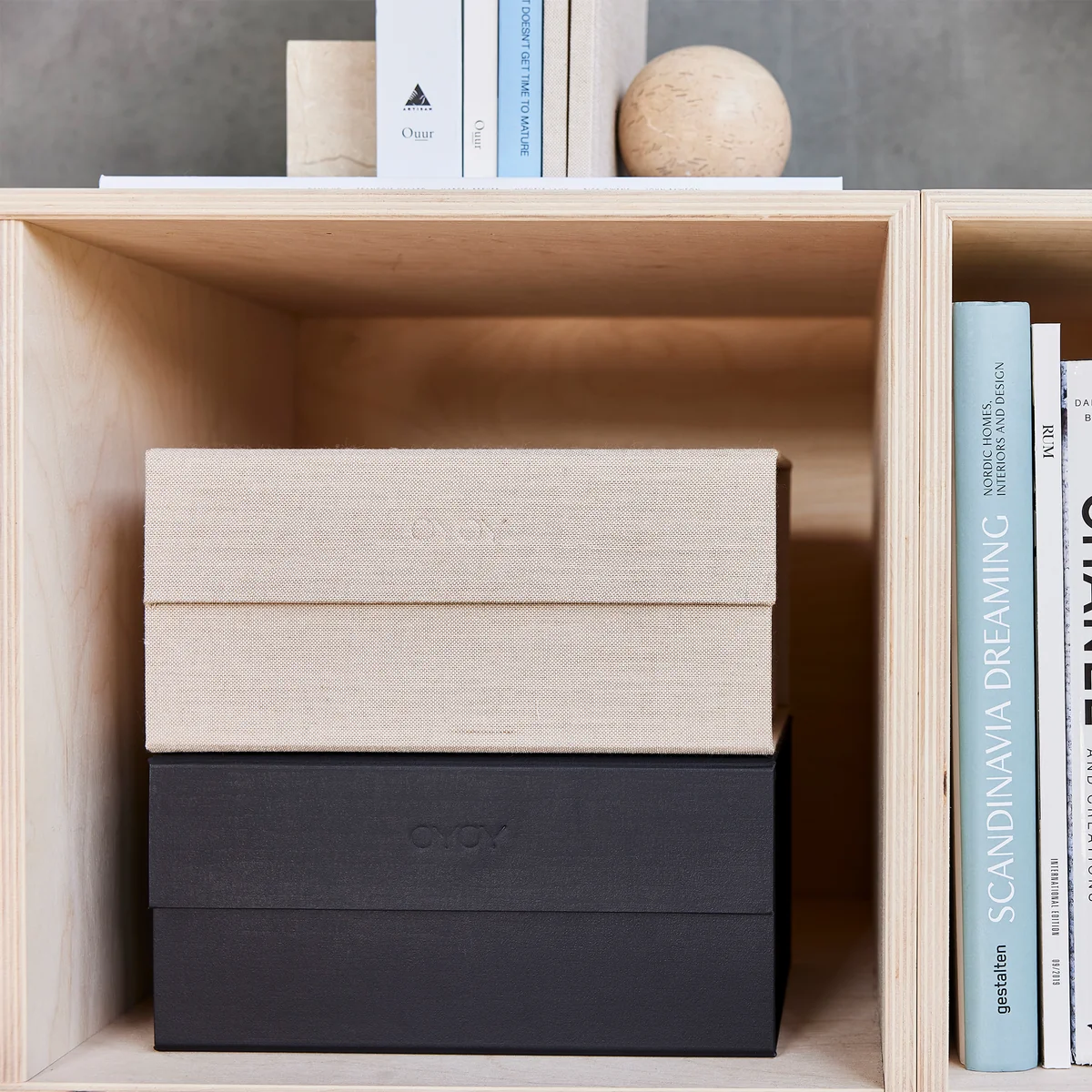 Die Hako Aufbewahrungsbox besteht aus strapazierfähigem und leicht zu reinigendem Stoff, der für seine Langlebigkeit geschätzt wird. Das Material ist sorgfältig ausgewählt, um sicherzustellen, dass die Gegenstände gut geschützt sind. Das Design der Hako Aufbewahrungsbox ist typisch skandinavisch - schlicht, elegant und funktional. Die neutralen Farben und klaren Linien passen zu verschiedenen Einrichtungsstilen und verleihen dem Raum eine zeitgemäße Note.