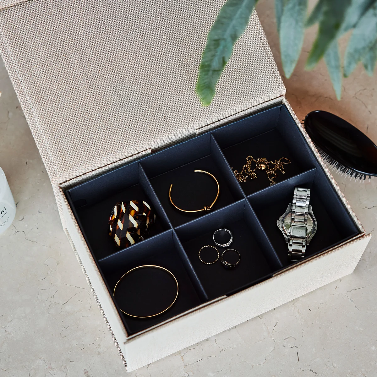 Die OYOY Hako Schmuckaufbewahrung vereint Ästhetik und Funktionalität auf elegante Weise. Diese stilvolle Aufbewahrungslösung wurde sorgfältig entworfen, um die Schmuckstücke sicher und organisiert zu verwahren, während sie gleichzeitig als dekoratives Element in dem Raum dient.