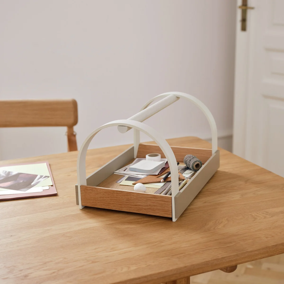 Gefertigt aus massivem und gebogenem Holz, überzeugt die Toolbox durch ihre hochwertige Materialität und langlebige Konstruktion. Die klare Gestaltung unterstreicht die natürliche Ästhetik und macht sie zu einem stilvollen Objekt für verschiedenste Wohnbereiche.