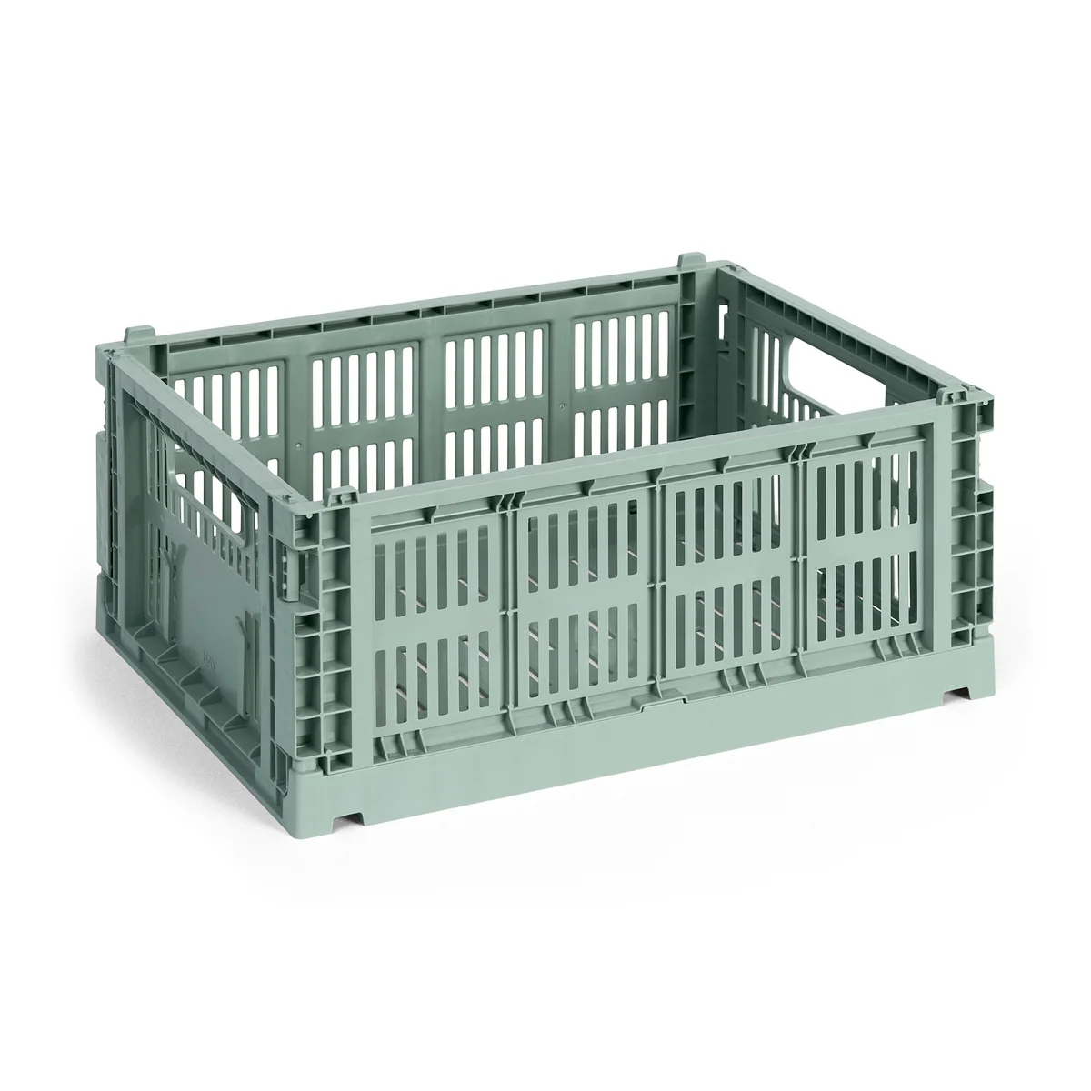 Der Colour Crate Korb recycled von HAY ist ein besonderes Stück der gleichnamigen Serie von multifunktionalen Aufbewahrungsboxen in einer Vielzahl von verschiedenen Farben und Größen. Mit einem belüfteten und stapelbaren Design, sind die Kisten sicher für die Verwendung mit Lebensmitteln.