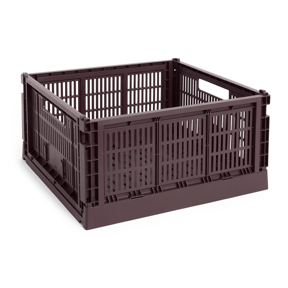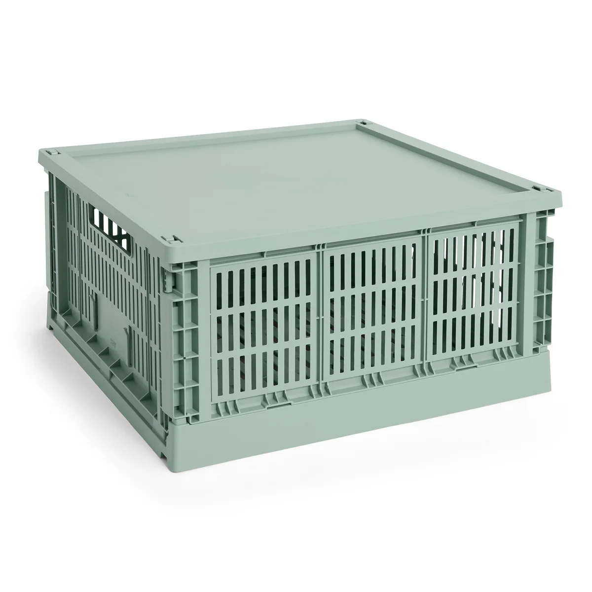 Die HAY Colour Crate Serie bietet funktionale Aufbewahrungslösungen mit ikonischem, perforiertem Design. Gefertigt aus 100 % recyceltem Kunststoff (Post-Consumer Waste), sind die Crates in verschiedenen Größen und Farben erhältlich – von kubisch bis rechteckig. Dank durchdachter Stapelbarkeit, optionalen Deckeln und Rollen sowie der Möglichkeit zur flachen Faltung bei Nichtgebrauch lassen sich die Kisten flexibel einsetzen – zur Aufbewahrung, Präsentation oder sogar als Teil modularer Möbelideen.