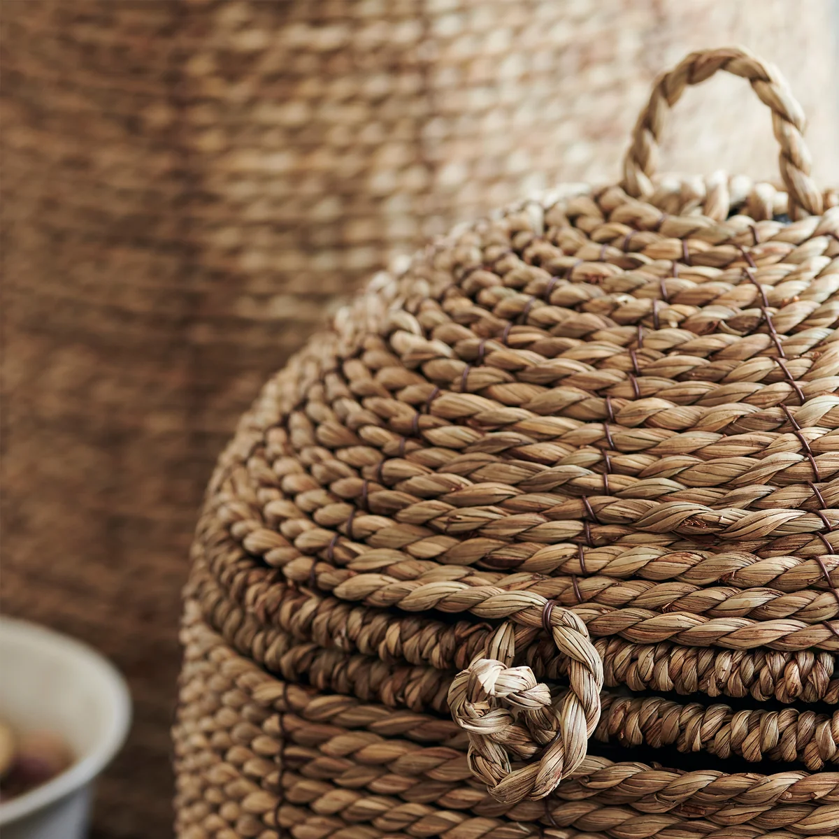 Der Rama Korb mit Deckel von House Doctor erhält sein Aussehen durch Kordeln aus gedrehtem Seegras, die auf ein Gestell aus Metall geflochten werden. Das verleiht dem Korb einen naturbelassenen und rohen Look, der ihn zum heimlichen Star jeder Inneneinrichtung macht.