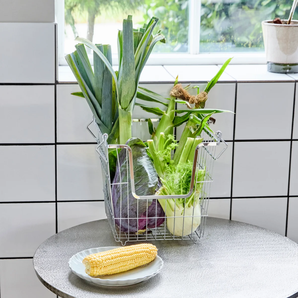 Das offene Drahtdesign sorgt dafür, dass der Inhalt jederzeit sichtbar und übersichtlich bleibt. Gleichzeitig verleiht die klare Struktur dem Raum eine leichte, moderne Note. Ob im Wohnzimmer für Zeitschriften, im Badezimmer für Handtücher oder in der Küche für Obst und Vorräte – Taw verbindet Funktionalität mit dekorativer Wirkung.