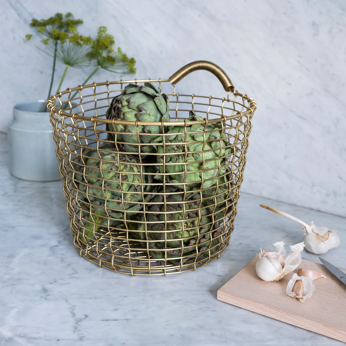 Die Körbe aus solidem Kupfer- oder Messingdraht hergestellt, erhalten über die Zeit - je nach Einsatzbereich, ausgesetzter Feuchtigkeit und anderen Einflüssen, eine individuelle Patina.