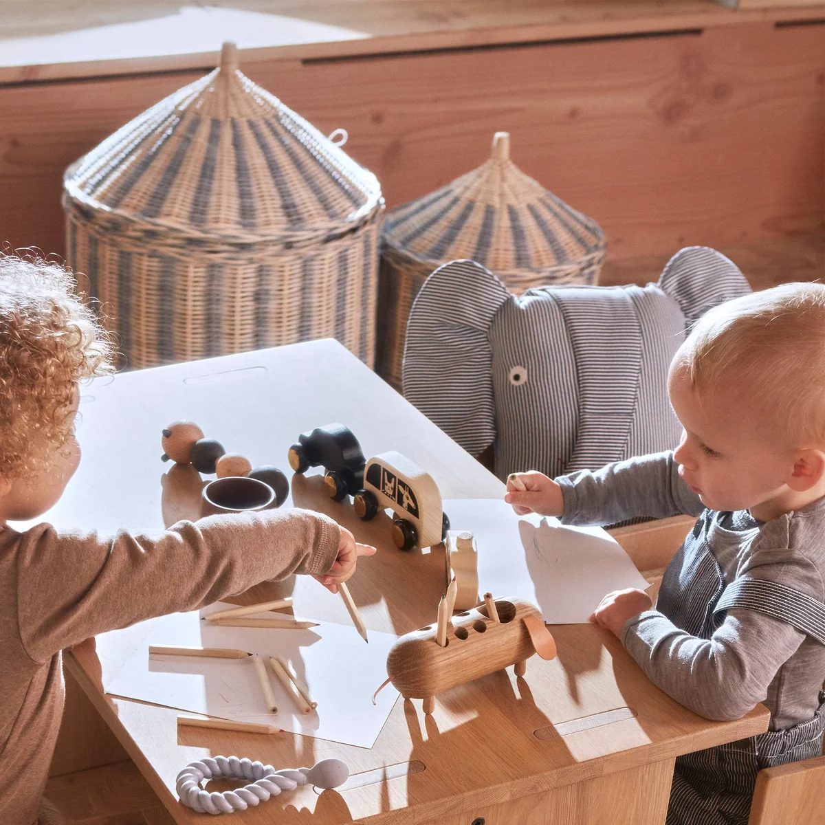 Die Circus Aufbewahrungskörbe von OYOY sind eine praktische, einfache und spielerische Art, das Spielzeug der Kinder zu organisieren. Die Oberseite der Circus Körbe dient als Deckel, so dass die Spielsachen leicht verstaut werden können.
