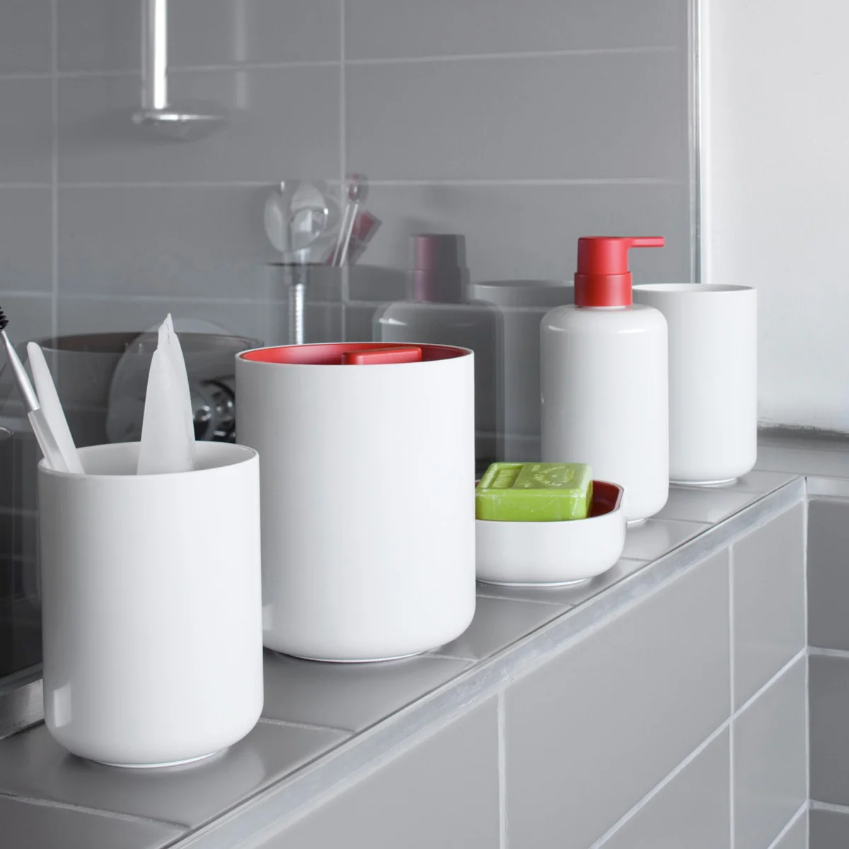 Der Lunar Seifenspender von Authentics nimmt bis zu 0.4 l Flüssigseife oder Pflegelotion auf. Der rundliche Seifenspender von den Designern Edward Barber und Jay Osgerby besteht aus hochglänzendem ABS-Kunststoff mit einem farbigen Pumpaufsatz.