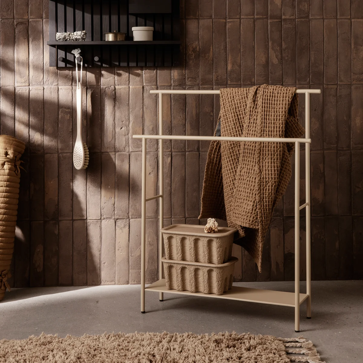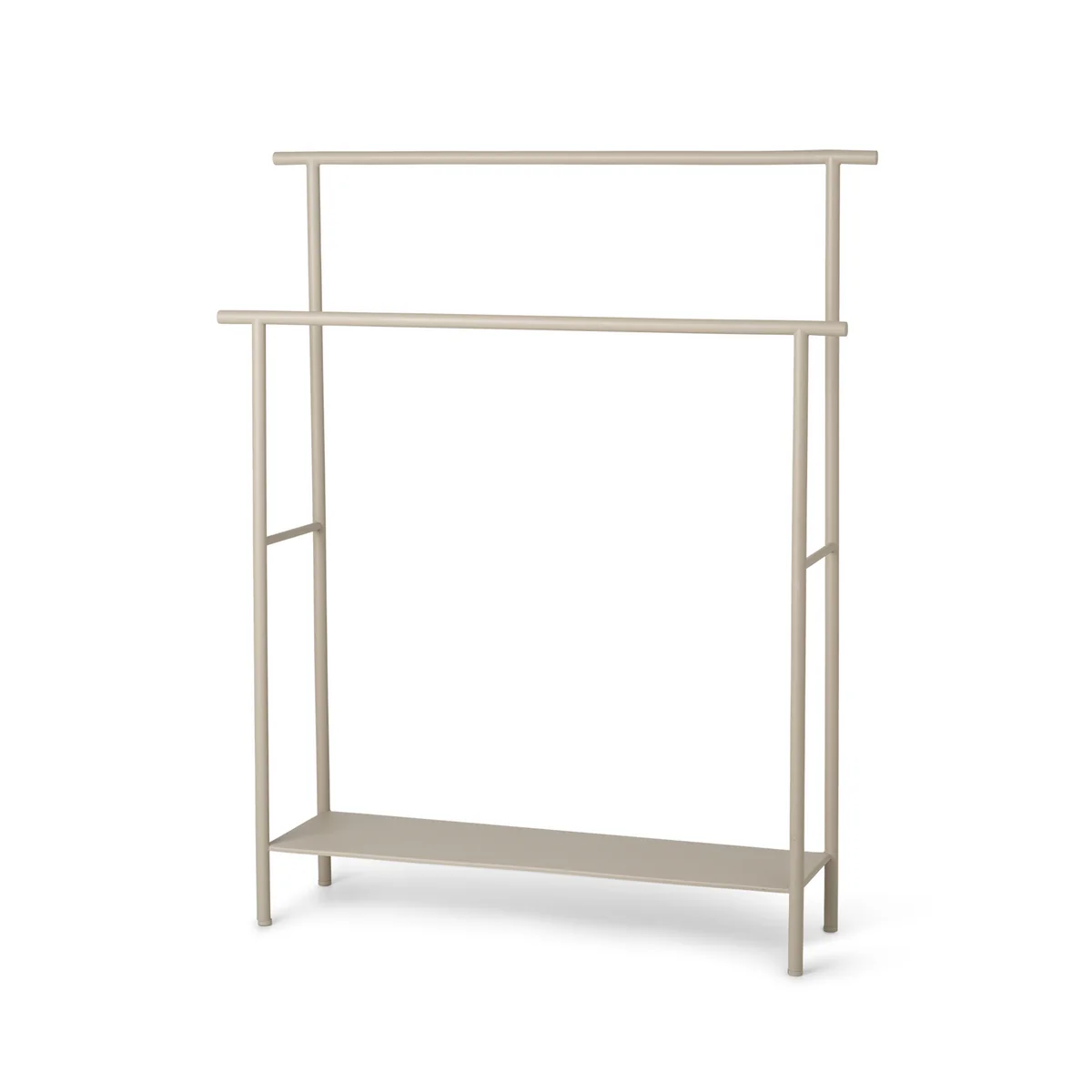 Der Dora Handtuchhalter von Ferm Living ist ein schickes, schlichtes Regal für die Verwendung im Badezimmer. Mit seinem schlanken, pulverbeschichteten Metallrahmen eignet er sich optimal für den Einsatz bei feuchten Bedingungen. Auf dem Regal lassen sich mehrere Handtücher aufhängen und trocknen. Auch andere Gegenstände können auf der integrierten Ablage geschmackvoll verstaut werden. In zwei Farben erhältlich.