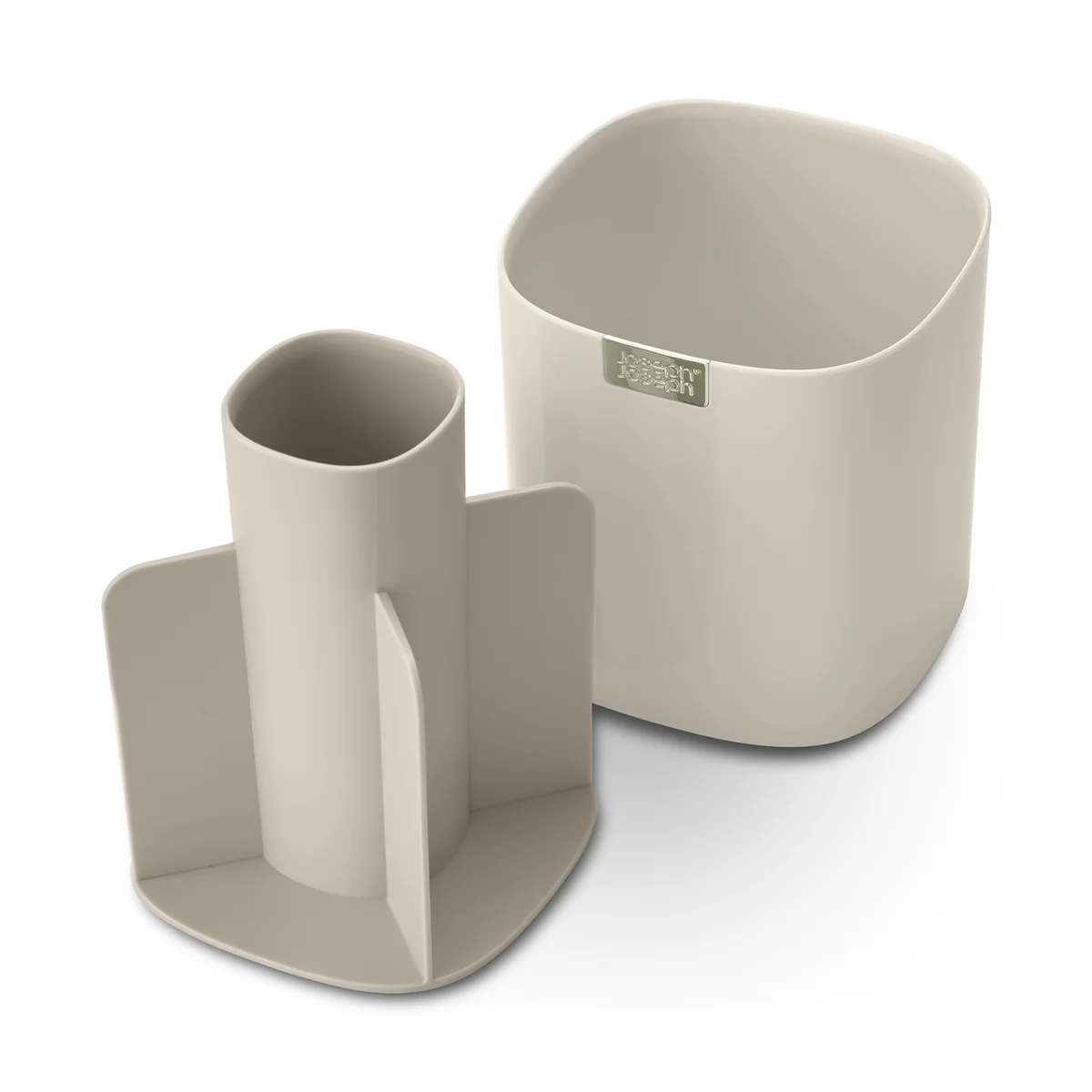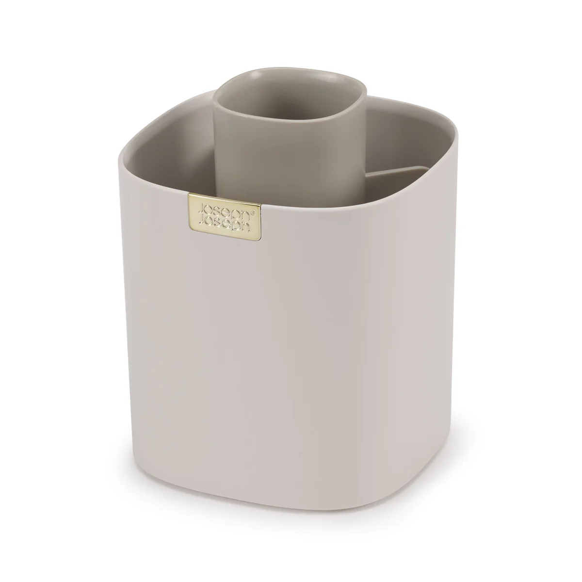 Der Viva Makeup Pinselbehälter des britischen Hersteller Joseph Joseph bietet wunderbar Ordnung. Schminkpinsel, Wimperntusche und Co haben optimalen Platz im Pinselbehälter. Das abgestufte Design ermöglicht idealen Zugang und optimale Übersichtlichkeit. Das verchromte Label sorgt für einen edlen Touch. Bei Bedarf kann Viva Makeup zur Reinigung ganz simpel zerlegt werden.