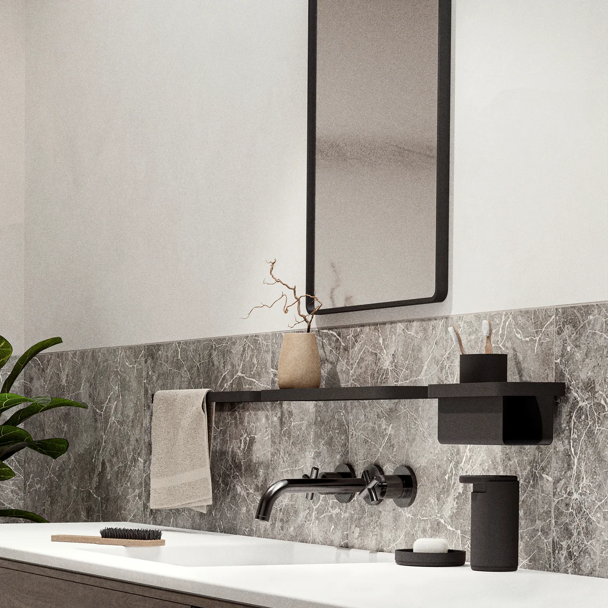 Die Rim Seifenschale von Zone Denmark können sich nach Wunsch und Belieben in Ihrem Haushalt einsetzen. Ob am Waschbecken oder in der Dusche - mit ihrem schlichten, edlen Design passt sie überall perfekt hin. Sie wird aus einer Material Kombination aus Aluminium und ABS Kunststoff hergestellt. Die Seifenschale kann toll mit weiteren Produkten der Rim Badezimmerserie kombiniert werden - so bspw. dem Seifenspender.