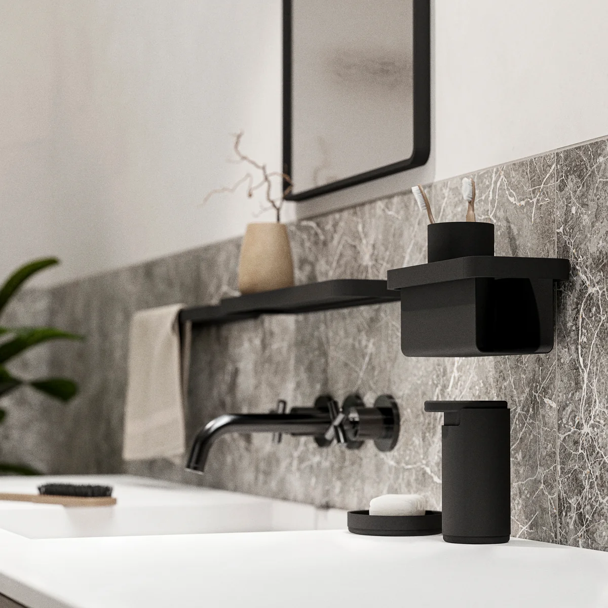 Der Rim Zahnputzbecher von Zone Denmark besticht mit seinem hohen, schmalen Design. Der edle Zahnputzbecher wird aus einer Materialkombination aus Aluminium und ABS Kunststoff gefertigt. Der Zahnputzbecher kann entweder klassisch für die Lagerung von Zahnbürsten genutzt oder umfunktioniert werden. So können beispielsweise Make-up Pinsel hervorragend aufgestellt werden.