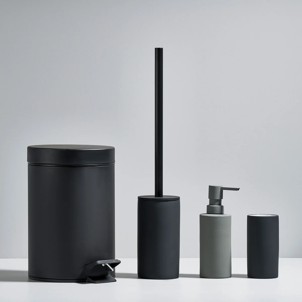 Neben dem Zahnputzbecher gehören auch eine Toilettenbürste und ein Pedaleimer zu der Serie.