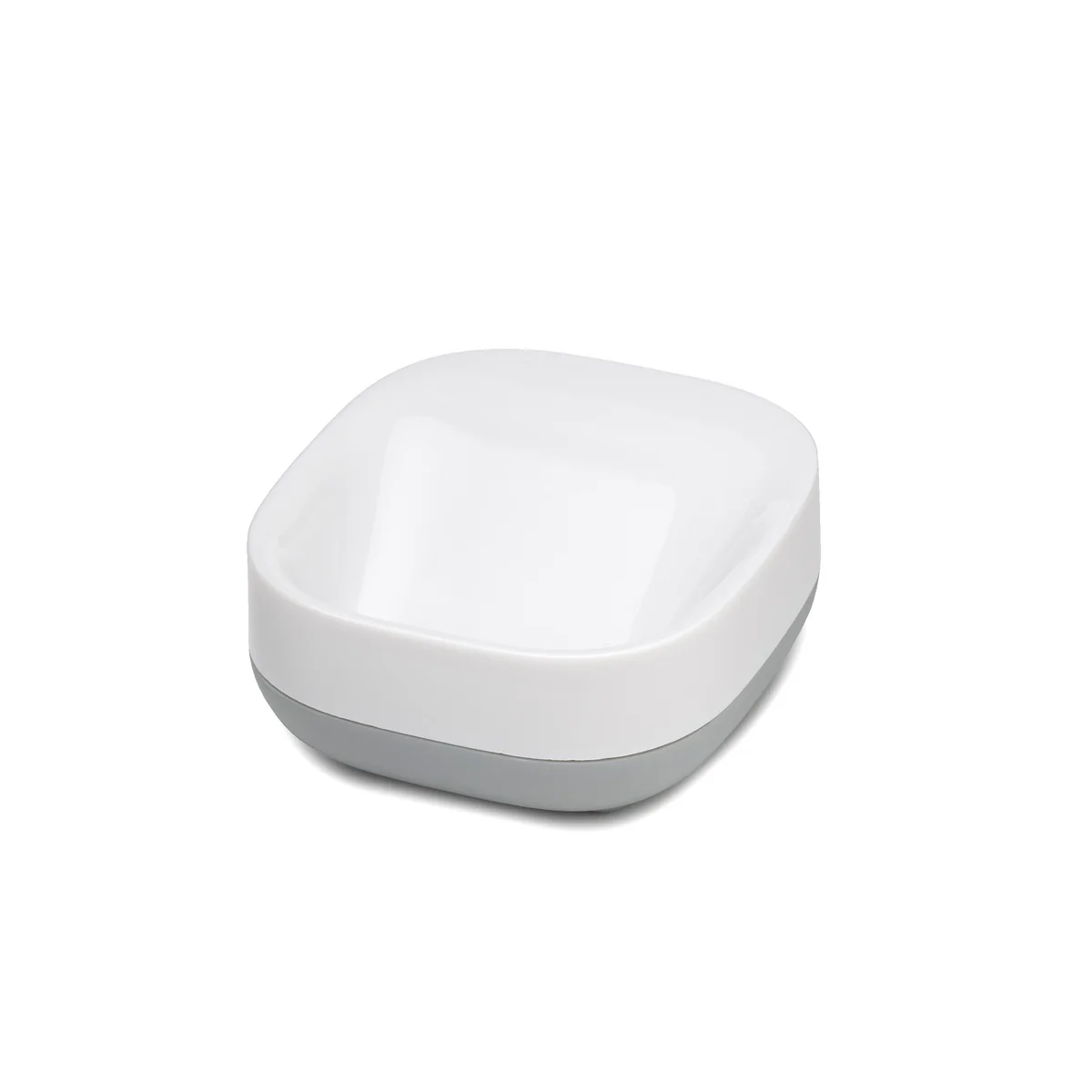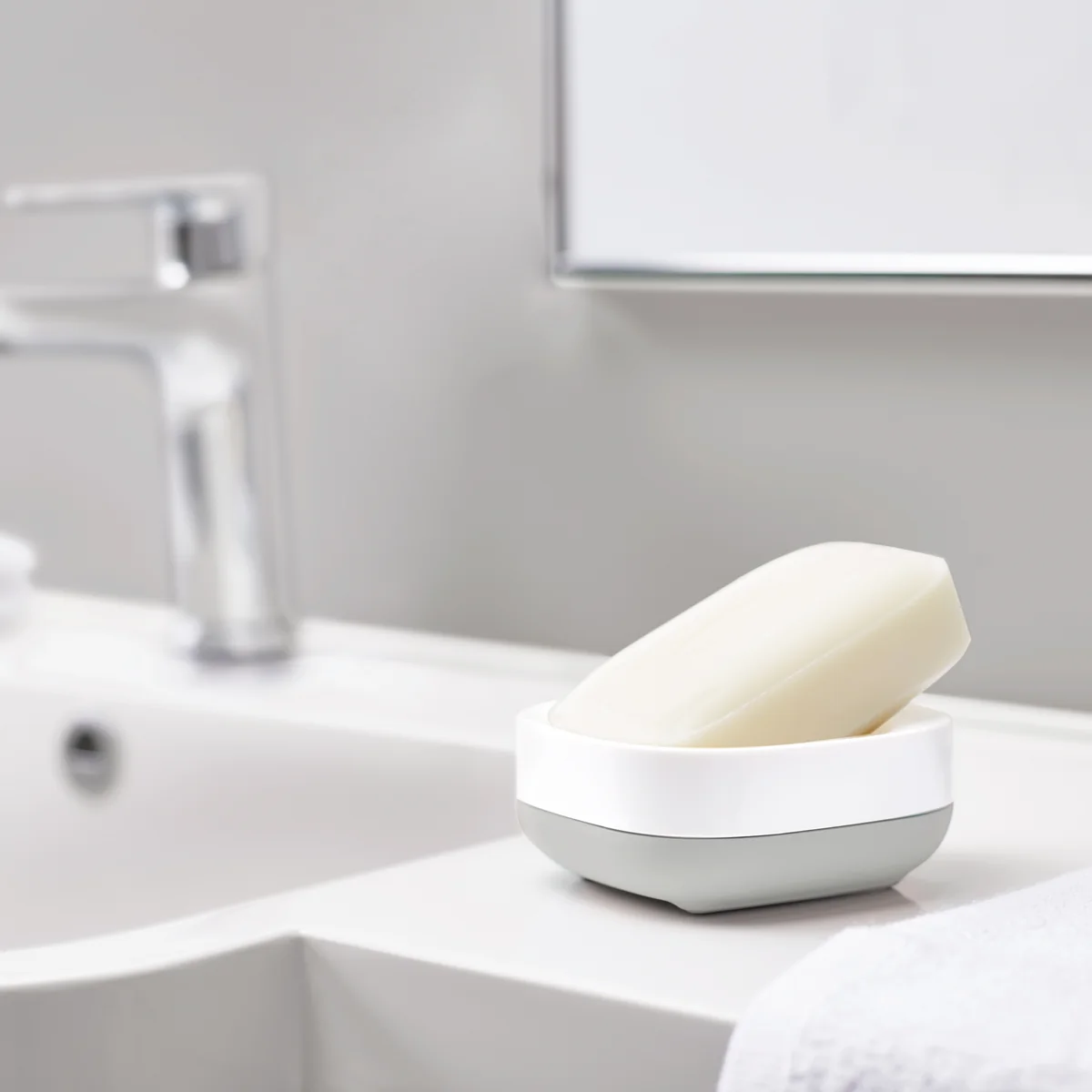 Das Design ist funktional, schlicht und besticht durch seine harmonische Farbkombination, die sich hervorragend in jedes Badezimmer einfügt. Eine rutschfeste Beschichtung am Boden des Behälters sorgt zudem für die nötige Standfestigkeit auf den oft nassen und glatten Badezimmer-Oberflächen.Zum Reinigen lässt sich die Slim Seifenschale einfach auseinander nehmen, sodass die Elemente einzeln geputzt werden können.