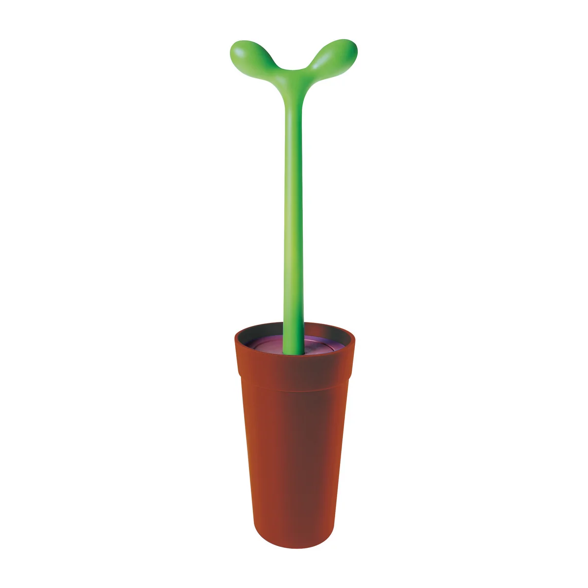 "Merdolino" erinnert auf den ersten Blick an eine Pflanze. Die Klosettbürste selbst wirkt wie ein Kaktus oder Ähnliches und die Abstellvorrichtung sieht aus wie ein Blumentopf.