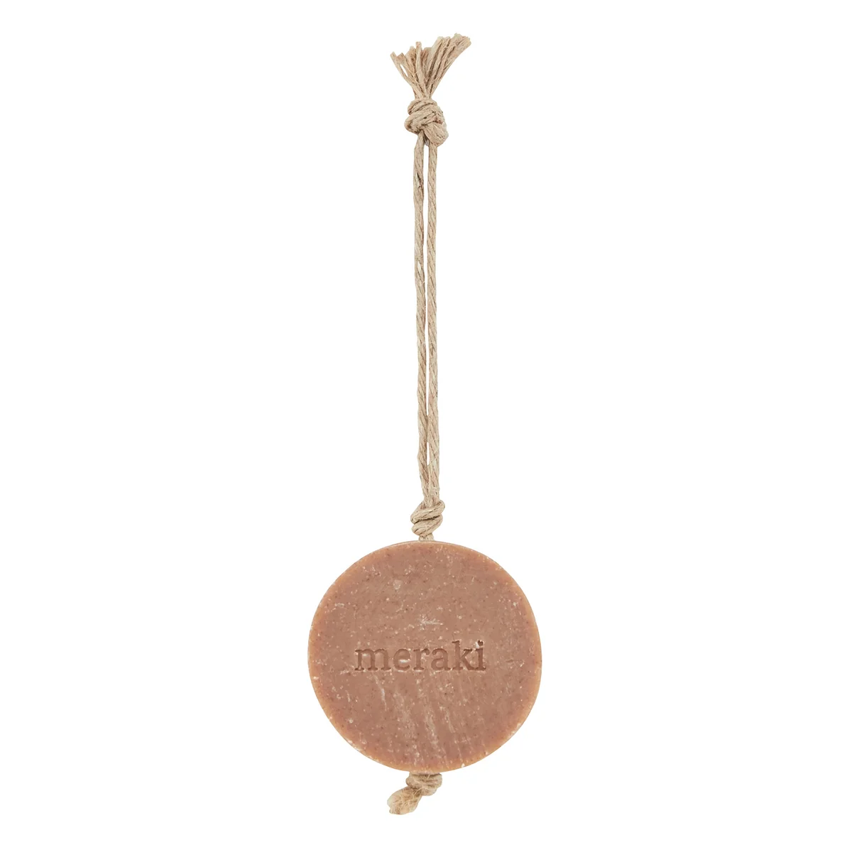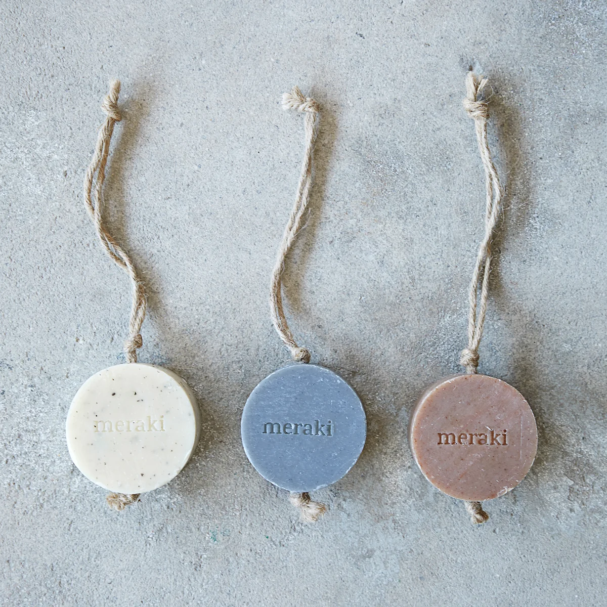Die runde Seife mit Kordel von Meraki bietet eine sanfte Reinigung der Hände. Erhältlich in unterschiedlichen Ausführungen beispielsweise mit kühlenden, belebenden oder Peeling-Effekten.