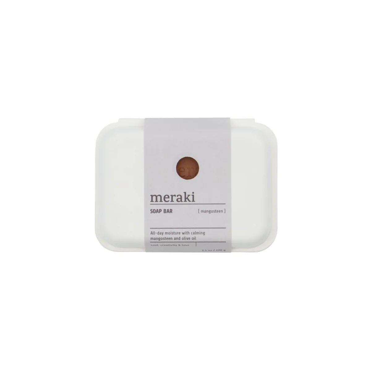 Reinigend und pflegend zugleich: Das Seifenstück von Meraki sorgt im Handumdrehen für saubere Hände und schützt sie gleichzeitig vor dem Austrocknen. Mit Extrakten von beispielsweise Lavendel, Sandelholz, Zitrus oder Aloe Vera versprüht sie zudem eine dezente, frische Duftnote.
