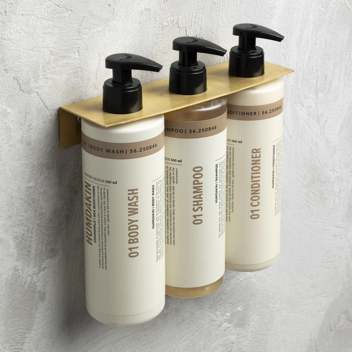 Die Triple Flaschenwandhalterung von Humdakin ist die elegante Lösung, um Ihre Pflegeprodukte stilvoll und griffbereit zu präsentieren. Sie bietet Platz für drei 500-ml-Flaschen – ideal für Shampoo, Conditioner und Body Wash – und sorgt für ein harmonisches, aufgeräumtes Gesamtbild in Ihrem Badezimmer.