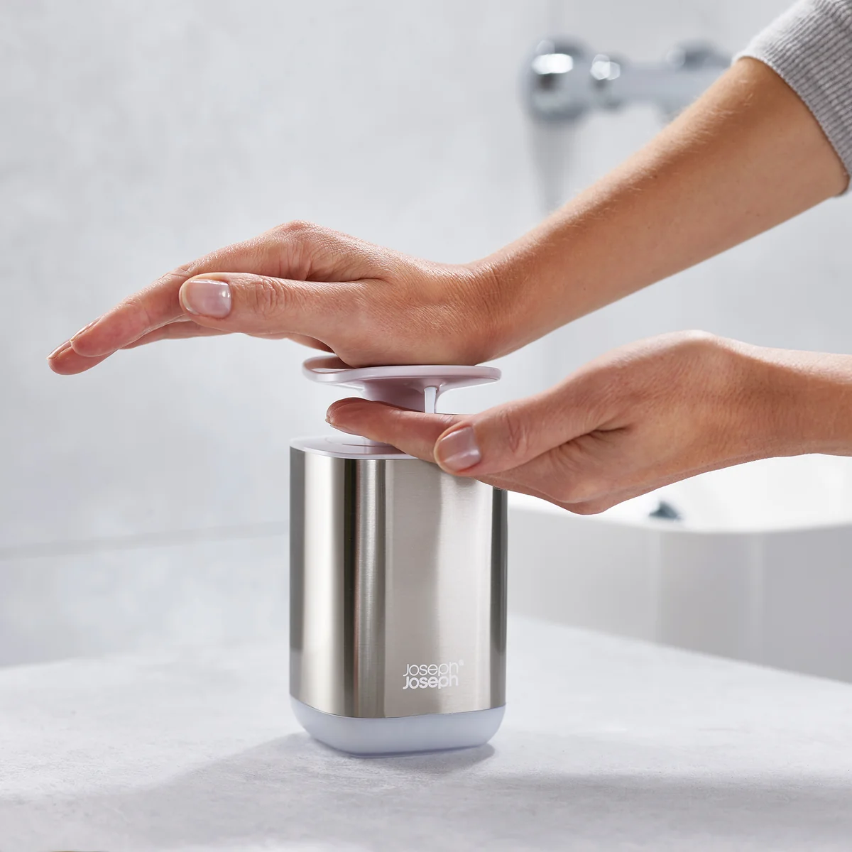Mit dem Badezimmer Beauties Set von Joseph Joseph wird die Organisation in Ihrem Badezimmer zu einem mühelosen Erlebnis. Dieses Set umfasst einen Seifenspender aus Edelstahl und einen großen Zahnbürstenbehälter, die sowohl funktional als auch stilvoll sind. Der Seifenspender verfügt über einen großzügigen, leicht zu bedienenden Pumpspender, der optimale Hygiene garantiert, und ein praktisches Füllmengenfenster, damit Sie den Seifenstand im Blick behalten können. Die rutschfeste Basis sorgt dafür, dass der Seifenspender sicher an seinem Platz bleibt. Mit einem Fassungsvermögen von bis zu 350 ml (12 fl. oz) Flüssigseife haben Sie immer ausreichend Vorrat. Der Zahnbürstenbehälter ist äußerst vielseitig und kann leicht für eine einfache Reinigung zerlegt werden. Er bietet ausreichend Platz für Hand- oder elektrische Zahnbürsten, Zahnpasta und Zahnseide, was Ihre tägliche Routine perfekt organisiert. Das Badezimmer Beauties Set von Joseph Joseph ist die ideale Kombination aus Funktionalität und Design, um Ihr Badezimmer zu verschönern und gleichzeitig praktisch zu gestalten.