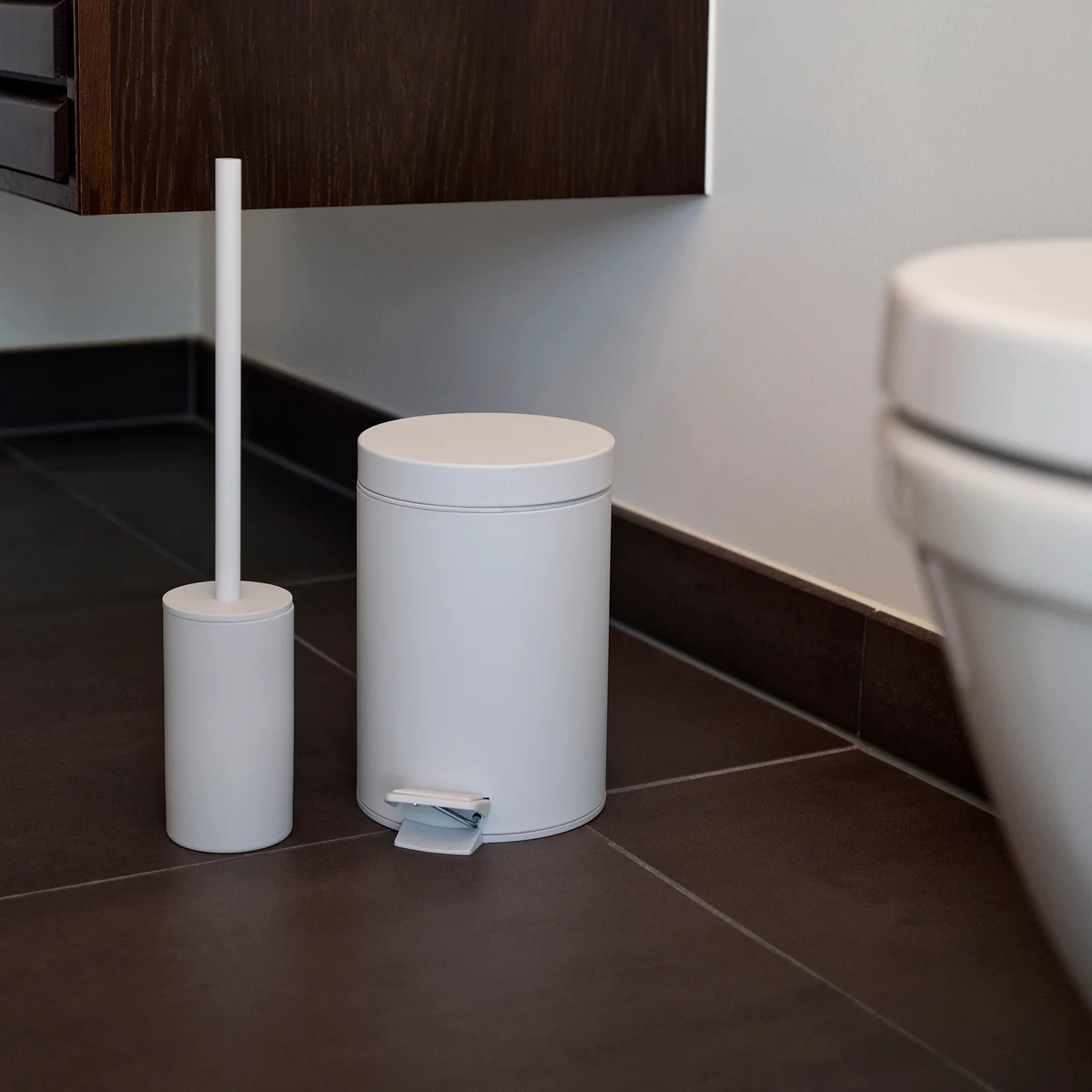 In verschiedenen Farben erhältlich, gehören neben der Toilettenbürste auch ein Zahnbürstenbecher und ein Pedaleimer zu der Serie. Ein Ersatz-Bürstenkopf ist separat erhältlich.