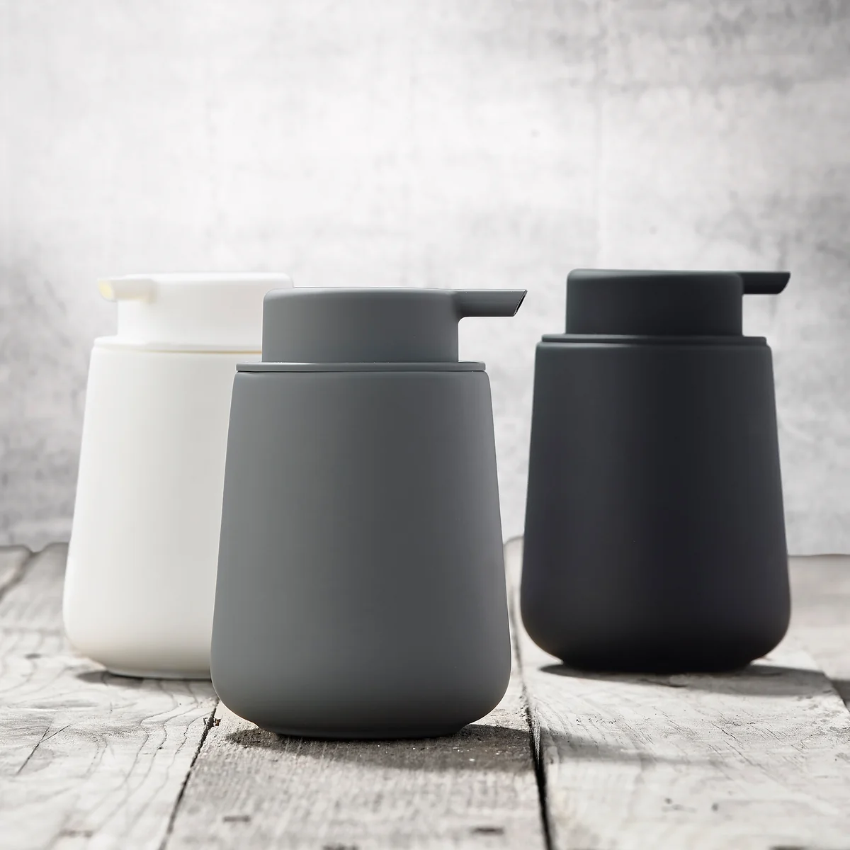 Der Nova One Seifenspender von Zone Denmark besticht mit seinem zeitlos schlichten Aussehen. Er wird aus Steinzeug mit Soft Touch Beschichtung in verschiedenen Farben und Polypropylen hergestellt und gehört zu der gleichnamigen Badezimmer-Kollektion von Thomas Dudzinski.
