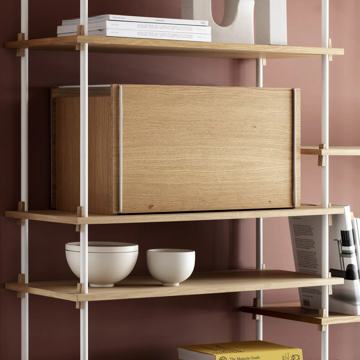 Die Aufbewahrungsbox von Moebe wird aus Eichenholz gefertigt. In zwei Farben erhältlich.