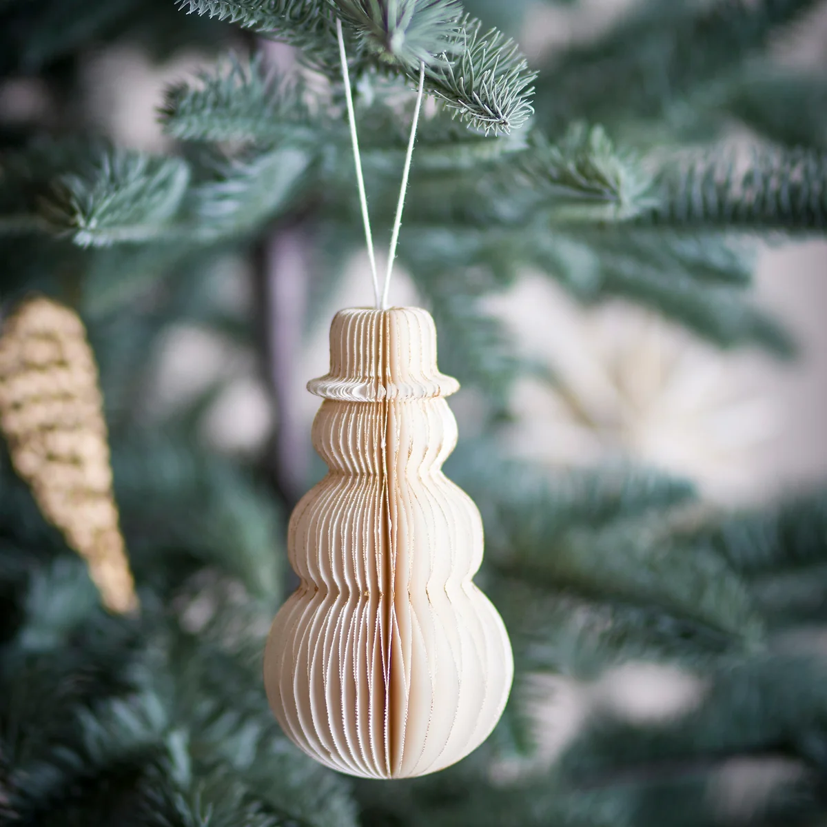 Das Felip Ornament von Bloomingville zeigt sich als stilisierter Schneemann aus Papier mit feinen Konturen und einem zarten Goldrand. Es lässt sich platzsparend zusammenfalten und verleiht dem Weihnachtsbaum oder einer festlichen Dekoration eine charmante, luftige Note.