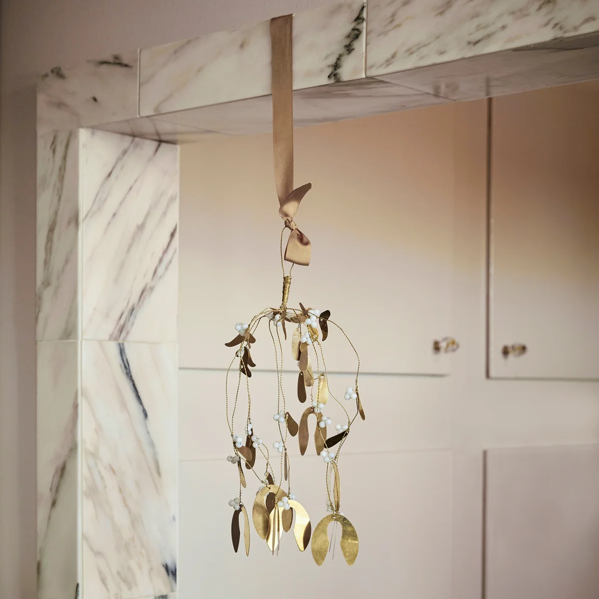 Das Mistletoe Ornament von House Doctor ist ein einzigartiger Blickfang in jeder weihnachtlichen Einrichtung. Das Ornament präsentiert goldene Blätter und weiße Perlen, die im Zusammenspiel ein wunderschönes weihnachtliches Design formen. Das Ornament kann vielseitig eingesetzt und kombiniert werden - ganz nach individuellen Wünschen.