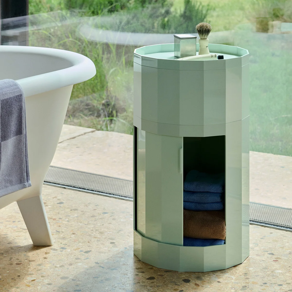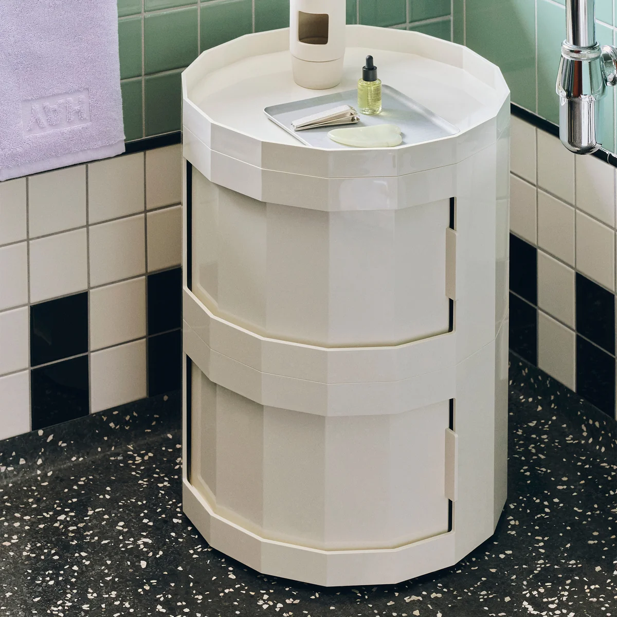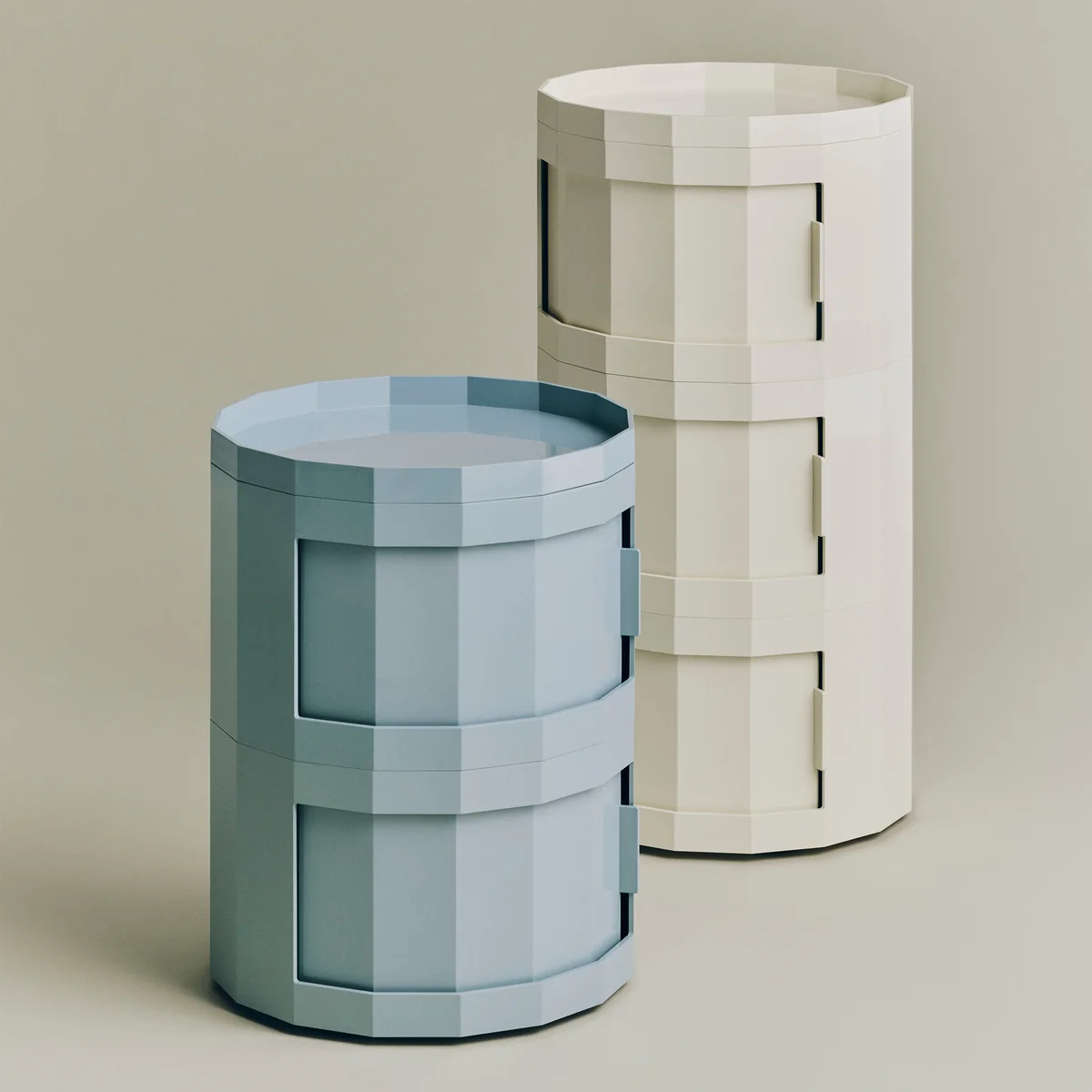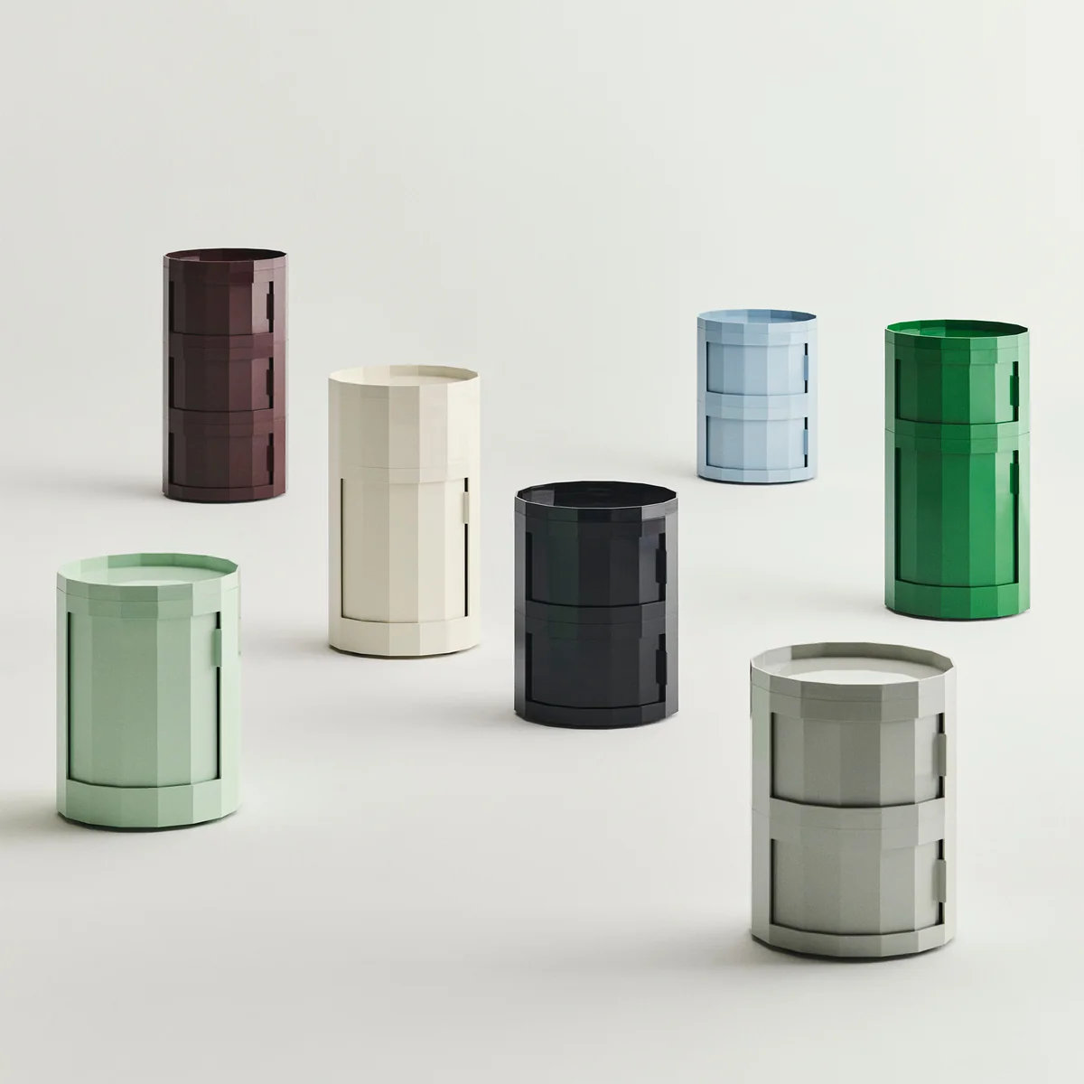 Der aus recyceltem ABS hergestellte Facet Container ist in zwei Höhen und einer Reihe von zeitlosen Farben erhältlich. Dank seiner Flexibilität eignet er sich für verschiedene Umgebungen, sei es als Nachttisch im Schlafzimmer, als Beistelltisch im Wohnzimmer oder als Ablage für Schreibwaren im Home Office.