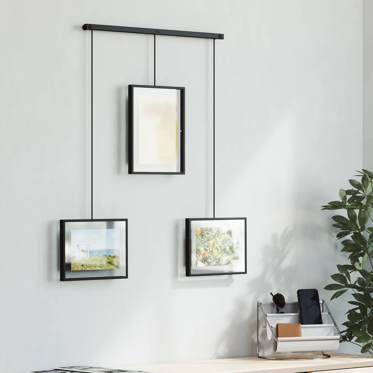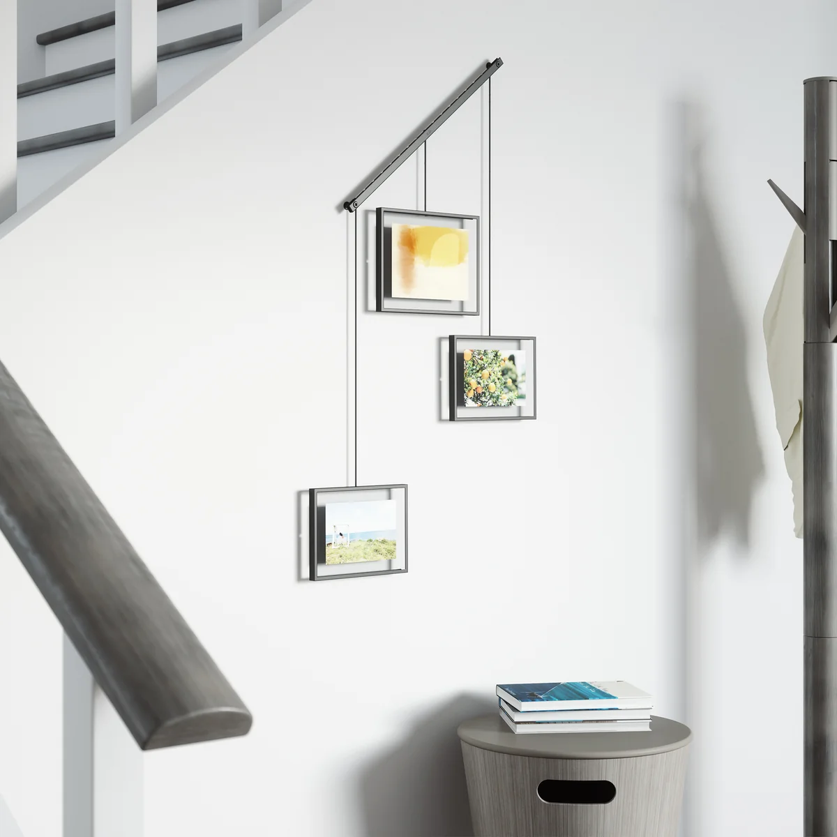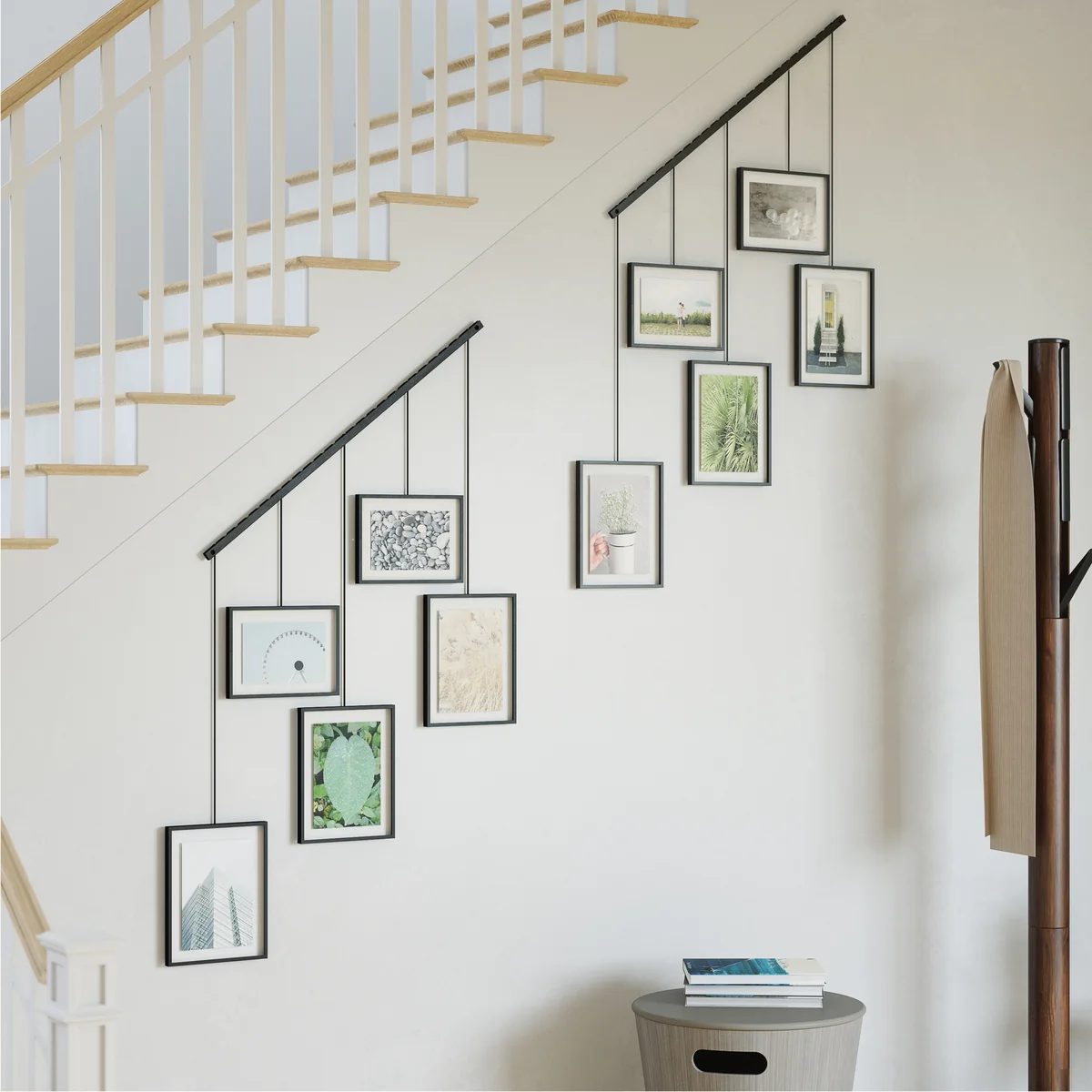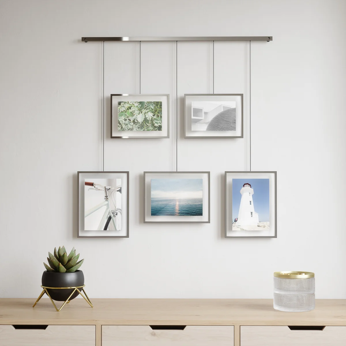 Der Exhibit Bilderrahmen von Umbra passt sich den verschiedensten Layout-Präferenzen an. Die Rahmen können entlang der Metallleiste verschoben und so je nach Bedarf in Quer- oder Hochformat ausgerichtet werden. In die fünf unterschiedlich großen Bilderrahmen passen jede Art von Lieblingsfotos, Kunstwerke und Illustrationen. Die Design-Bilderrahmen dienen auch als schöne und auffällige Wanddekoration für das Wohnzimmer oder den Flur.