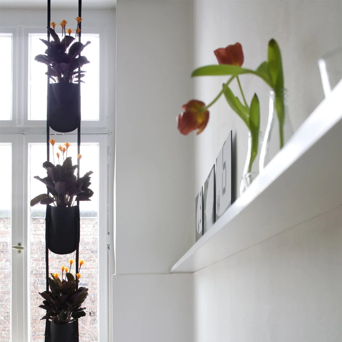 Die textilen Pflanzbehälter sind praktisch, pflegeleicht und eröffnen ein komplettes Spektrum neuer Möglichkeiten für die Raumgestaltung mit Pflanzen. Durch Klettverschlüsse an den Trageriemen werden die Pflanztaschen an Wand- und Deckenaufhängungen von Urban Garden sowie an Stangen, Haken, Ösen, Balken oder Geländern angebracht.