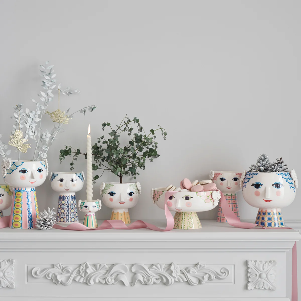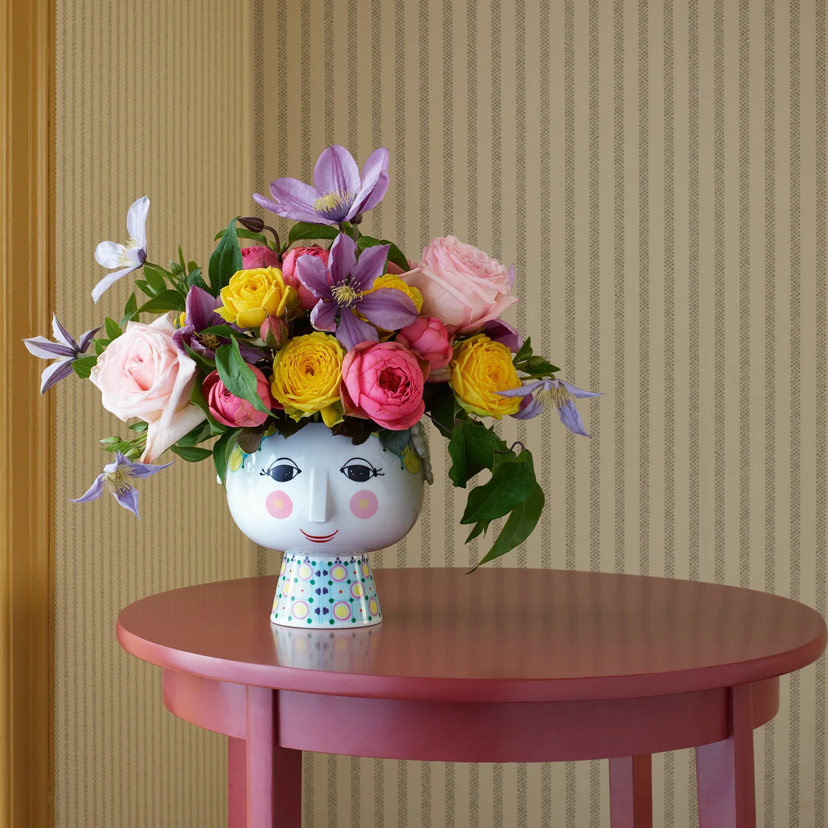 Der Übertopf Eva von Bjørn Wiinblad sorgt als Teil der berühmten Übertöpfe Serie für Nostalgie im 70er Jahre Stil. Der Übertopf mit dem charmanten Frauengesicht ist bunt gestaltet und versprüht einen dekorativen Retro-Touch auf dem Esstisch, in der Fensterbank oder im Regal.