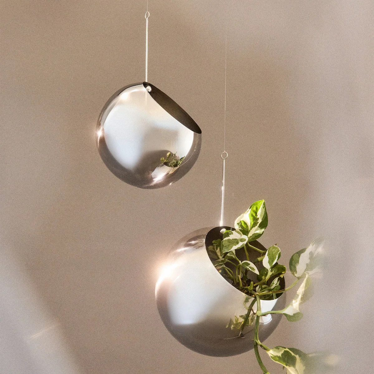 In einer leicht versetzen Ausführung, kommen die Pflanzen wunderbar zur Geltung und hängen ästhetisch in der Luft. Die Form erinnert an einen Globus und verleiht dem Wohnraum eine moderne Dezenz, die sich in den schlichten Farben und dem edlen Hängedetail äußert. Der Globe Hängeblumentopf ist hervorragend für Zimmerpflanzen, Sukkulenten oder Luftpflanzen. In unterschiedlichen Größen- und Farbausführungen erhältlich, ist der Hängeblumentopf eine raffinierte Alternative, mehr Grün in die Wohneinrichtung einzubeziehen.