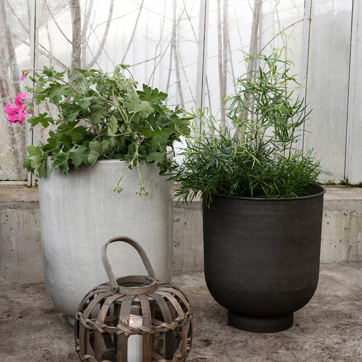 Die Blumentöpfe von House Doctor formen eine grüne und farbenfrohe Ecke auf der Terrasse. Pho setzt sich zusammen aus zwei Töpfen in unterschiedlichen Größen in einer umwerfenden grauen Farbgebung, die in nahezu jede Einrichtung passt.