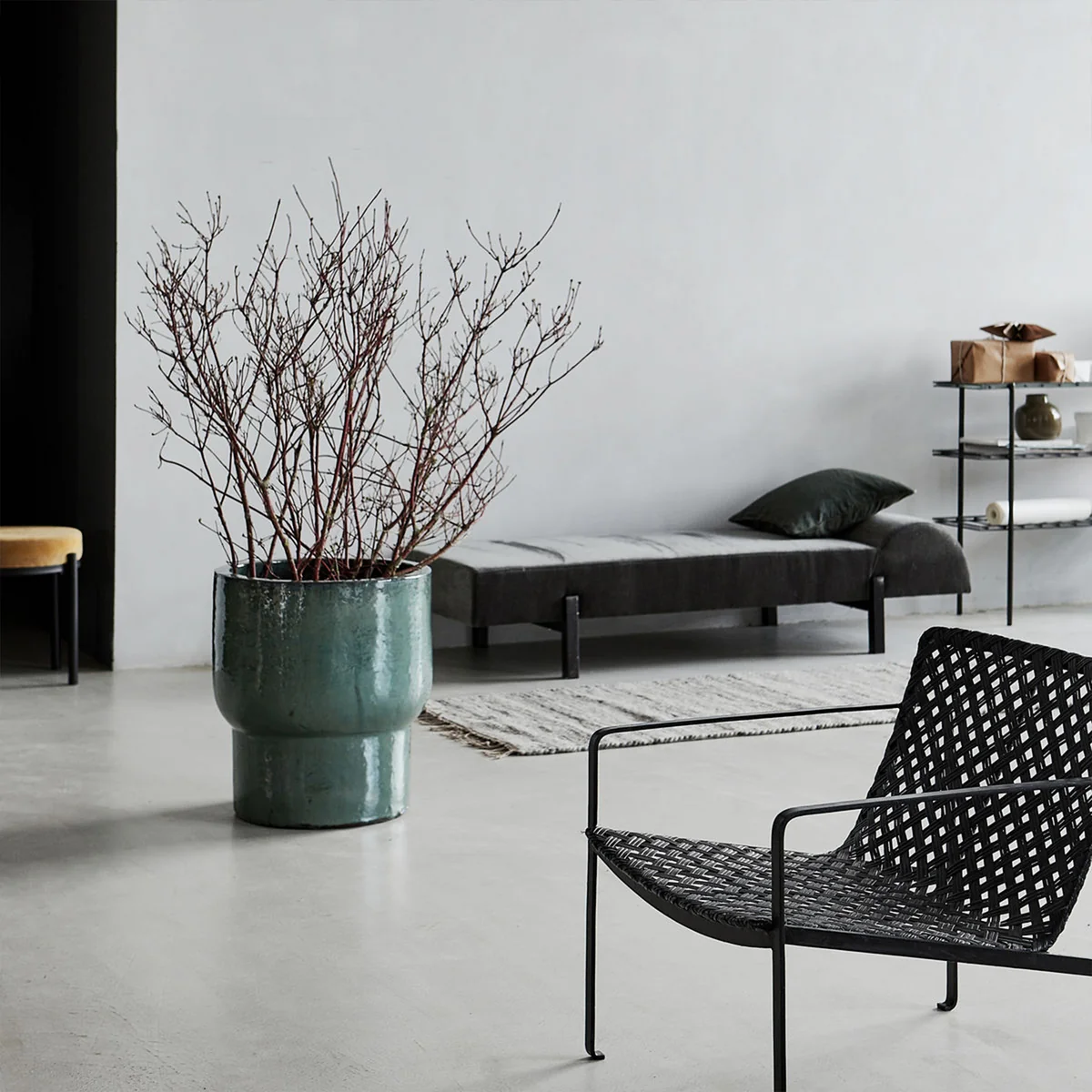 Mit dem Übertopf von House Doctor kommt mehr Style in deinen Garten. Der Tontopf ist mit einer reaktiven Glasur mit kleinen, aber bewusst gesetzten Unebenheiten überzogen. Ein zeitloser und unglaublich stylisher Übertopf, der perfekt zu den grünen Pflanzen in dem Außenbereich passt.