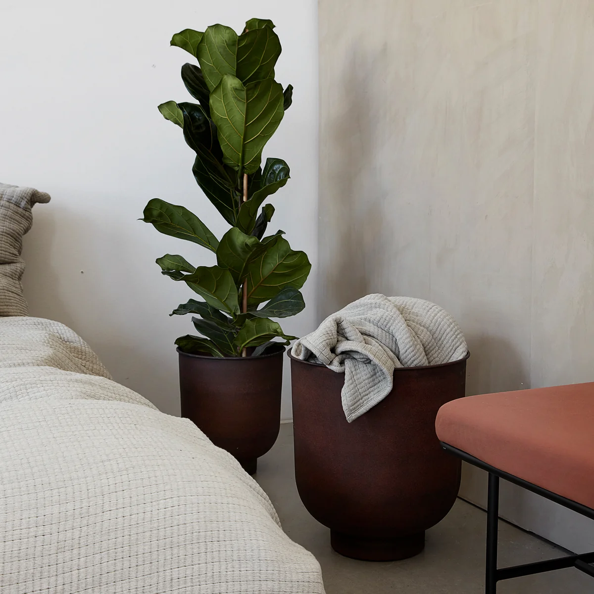 Die Vig Pflanztöpfe von House Doctor bringen Lebendigkeit und Persönlichkeit in das Zuhause. Die saubere Form und das robuste Eisen setzen grüne Pflanzen, zum Beispiel Palmen oder Drachenbäume, perfekt in Szene und passen in nahezu jede Umgebung, ob im Wohnzimmer, Flur oder Esszimmer.