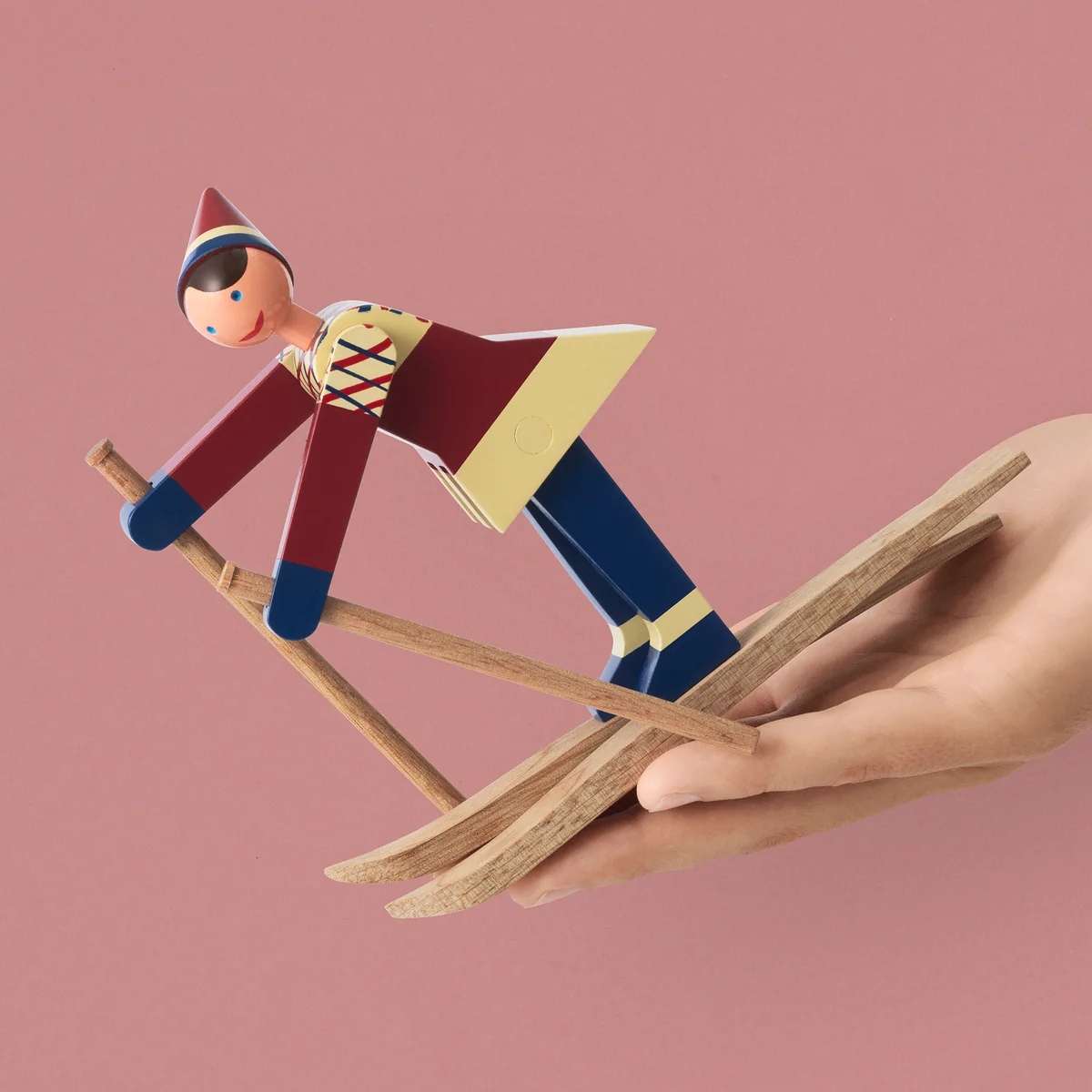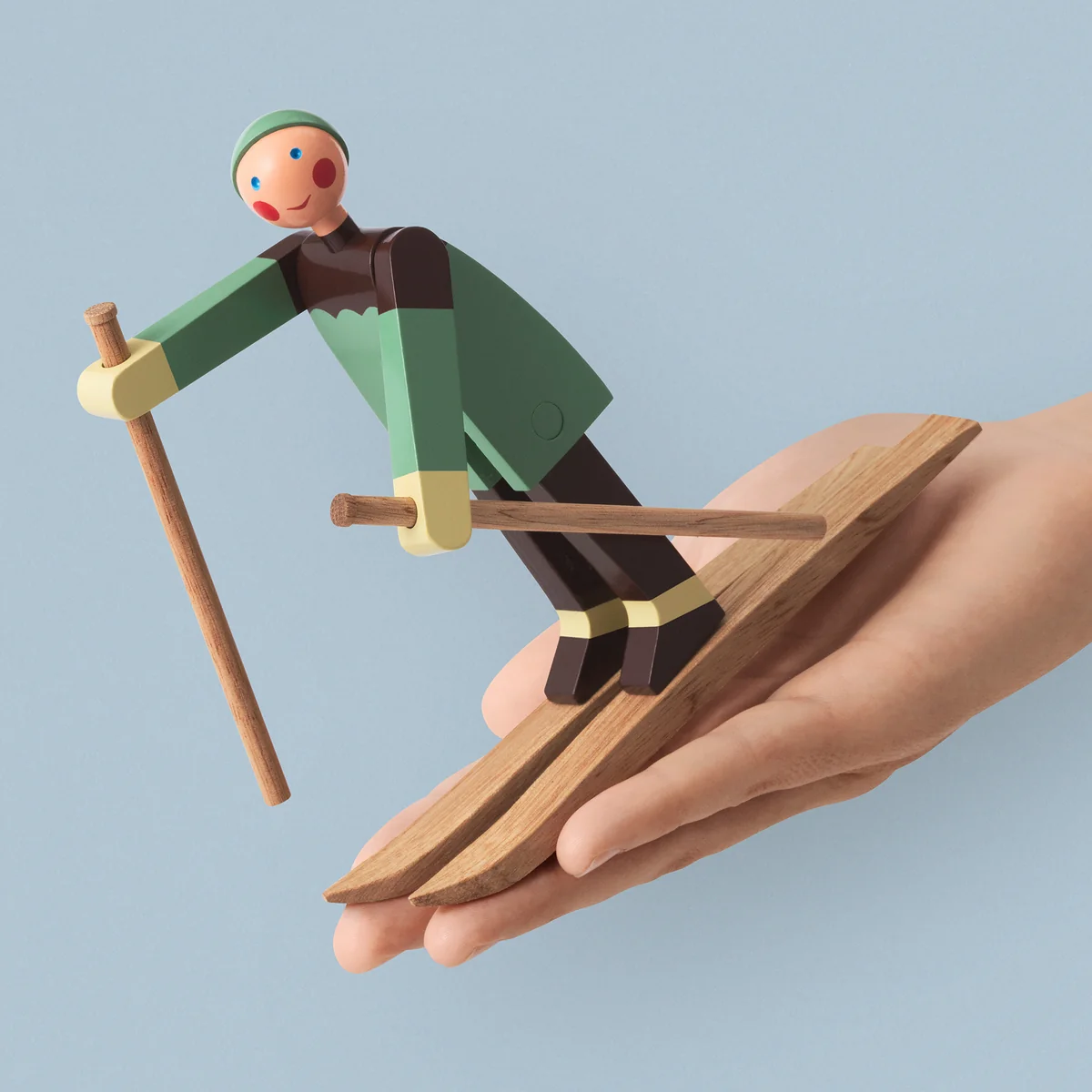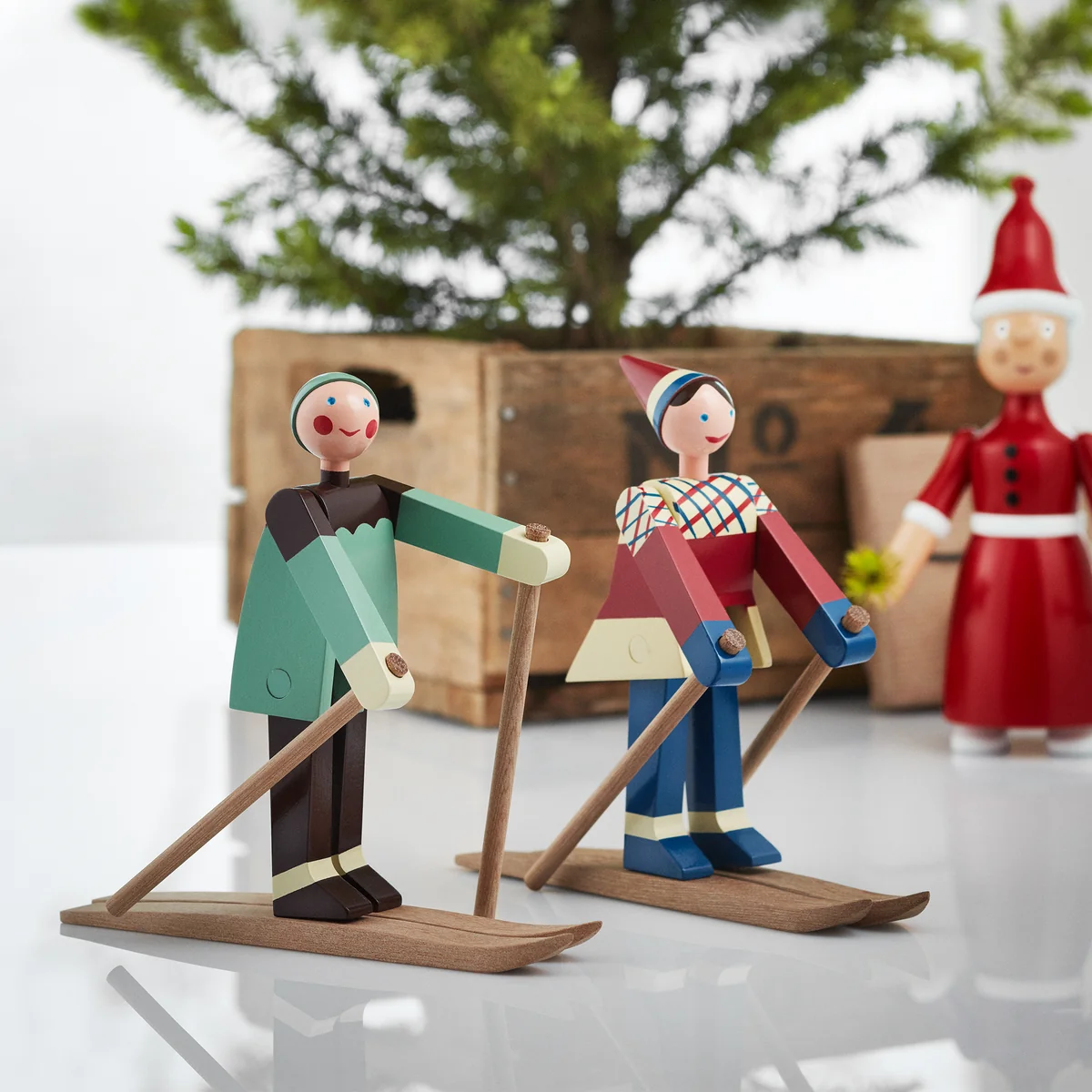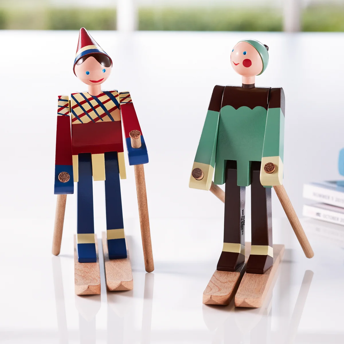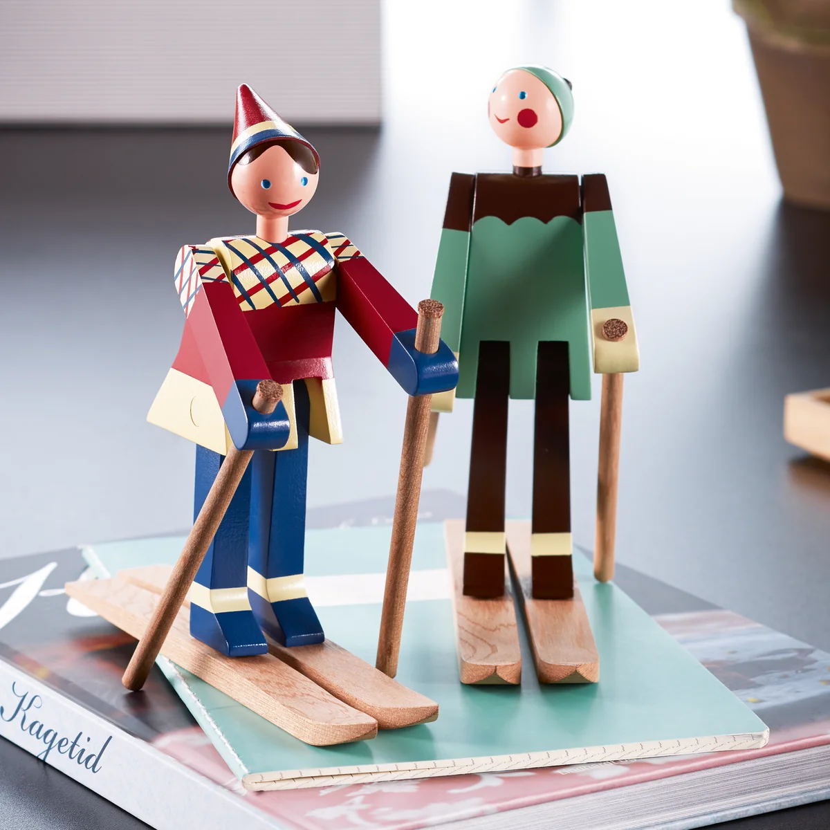 Die Skiläufer von Kay Bojesen sind eine Neuauflage des niedlichen Designs vom dänischen Designer aus den 1940er-Jahren- und flitzen schon bald in Ihr Wohnzimmer! Der mit roter Mütze und karierter Jacke heißt Boje, benannt nach dem Spitznamen von Kay Bojesens Sohn Otto. Seine Kollegin trägt den Spitznamen von Ottos Frau Ruth – Datti. Die beiden frechen Skiläufer wurden ursprünglich nur in kleinen Serien hergestellt, weshalb die ursprünglichen Holzfiguren heute echte Raritäten sind. Die Neuauflage des Skiläufers besteht aus bemalter Buche.