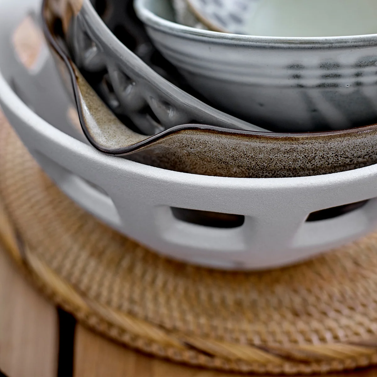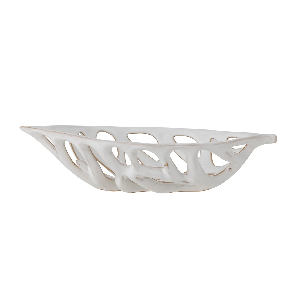 Die Foligno Schale von Bloomingville präsentiert ein skulpturales Design, das sich von dem restlichen Geschirr abhebt. Die wunderschöne Schale verfügt über Hohllöcher, die es zu einem tollen Obstkorb oder einer atemberaubenden Brotschale formen, bei dem der Inhalt sichtbar wird.