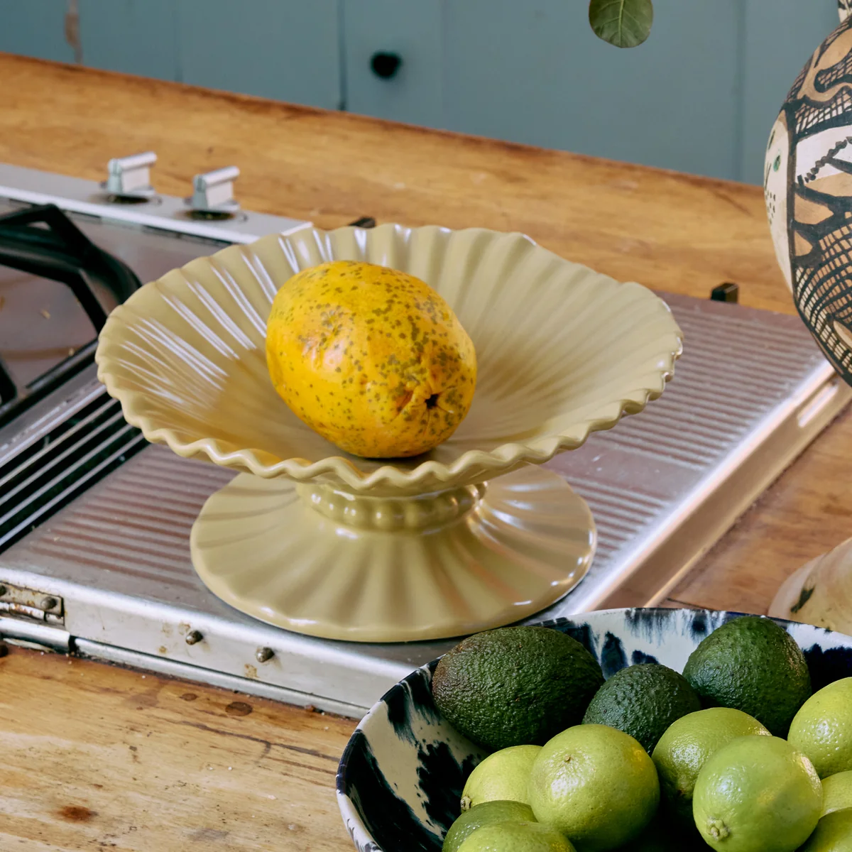 Die New Classics Ribble Schale mit Fuß von HKliving überzeugt durch ihre klare Formensprache und eine ruhige, matte Glasur. Mit ihrer erhöhten Position und der weich modellierten Silhouette wirkt sie wie ein Designobjekt und eignet sich gleichermaßen zum Servieren, Dekorieren oder stilvollen Arrangieren kleiner Gegenstände. Das Modell bringt dezente Farbe in den Raum und fügt sich harmonisch in verschiedene Interieurs ein – zeitlos, funktional und mit einem Hauch skulpturaler Eleganz.