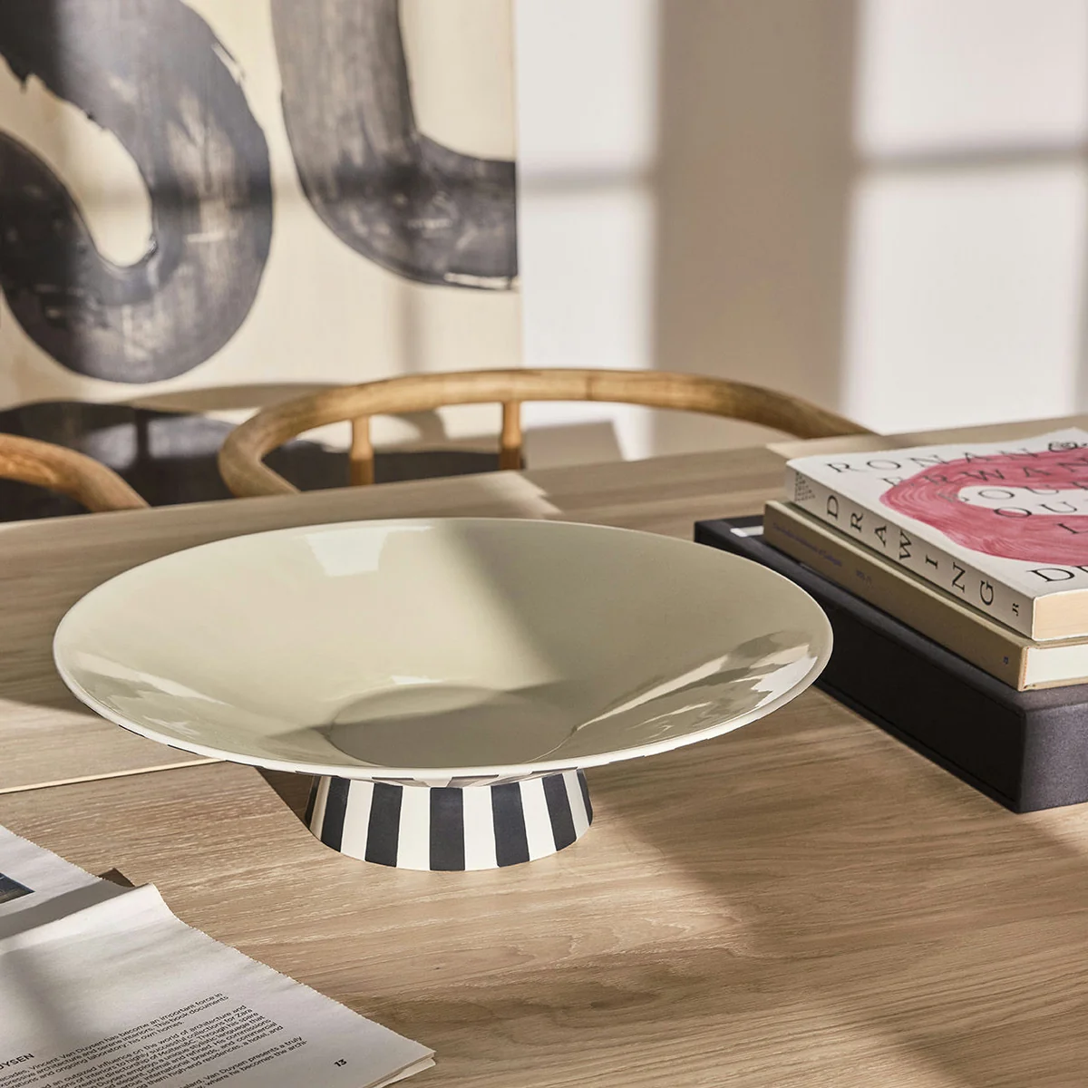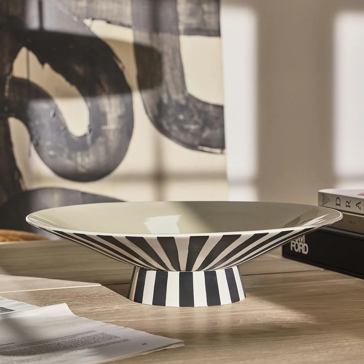 Die Toppu Centerpiece Dekoschale mit Fuß ist ein skulpturales Highlight, das mit seinen handbemalten, lebhaften Streifen jedem Tisch eine stilvolle, verspielte Note verleiht. Ob als Dekoschale, Servierschale oder zur Aufbewahrung kleiner Gegenstände – dieses einzigartige Designstück kombiniert Funktionalität mit Kunst.