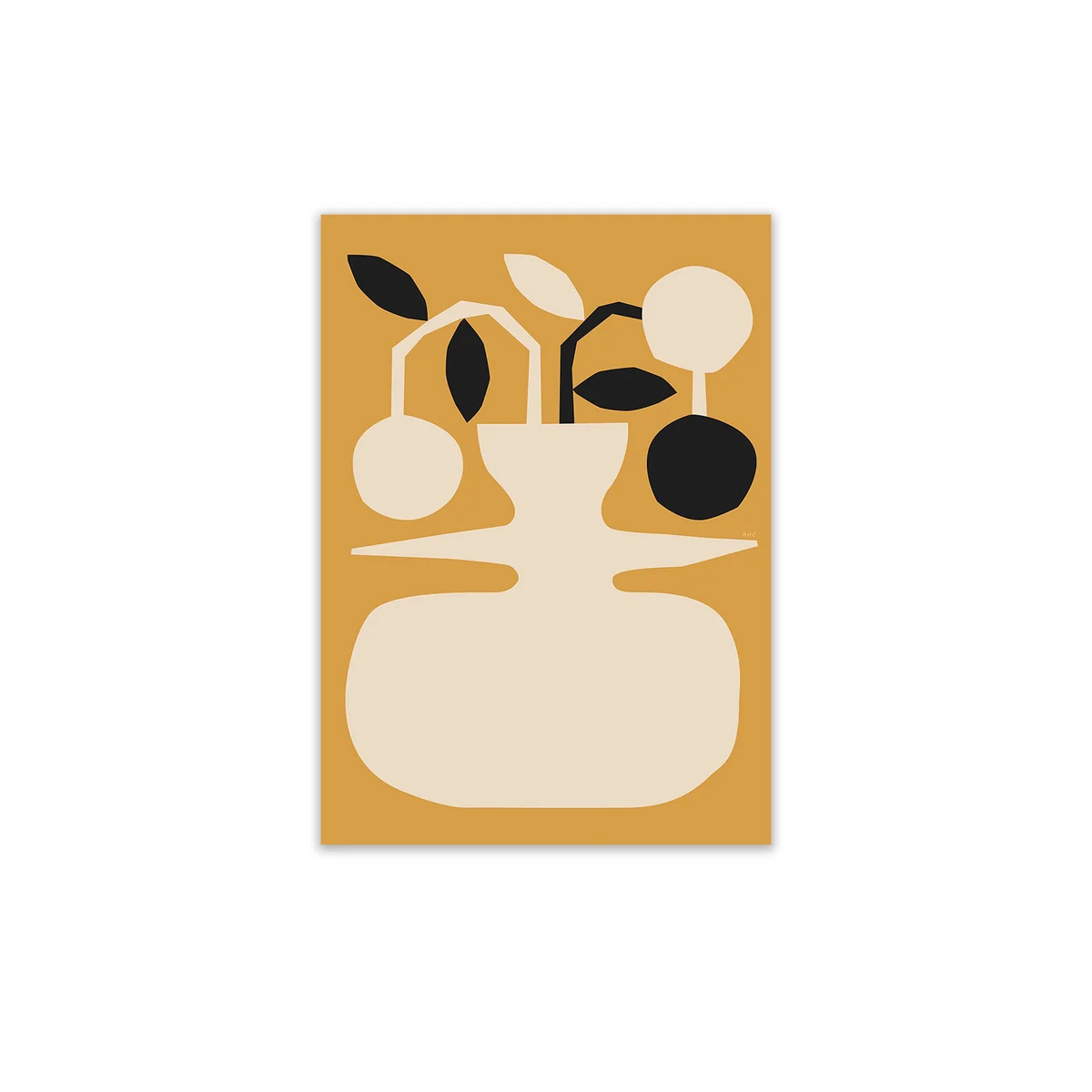 Das Jarrón Poster der mexikanischen Künstlerin Berenice Hernandez für Paper Collective zelebriert die Lebendigkeit des mexikanischen, städtischen Umfelds. Hernandez stellt zwei organisch geformte Terrakottatöpfe in den Fokus, aus welchen zwei Orangen-Zweige ragen. Die kühlen Beige- und Schwarztöne stellen eine optischen Kontrast zu dem satten, warmen Gelb dar.