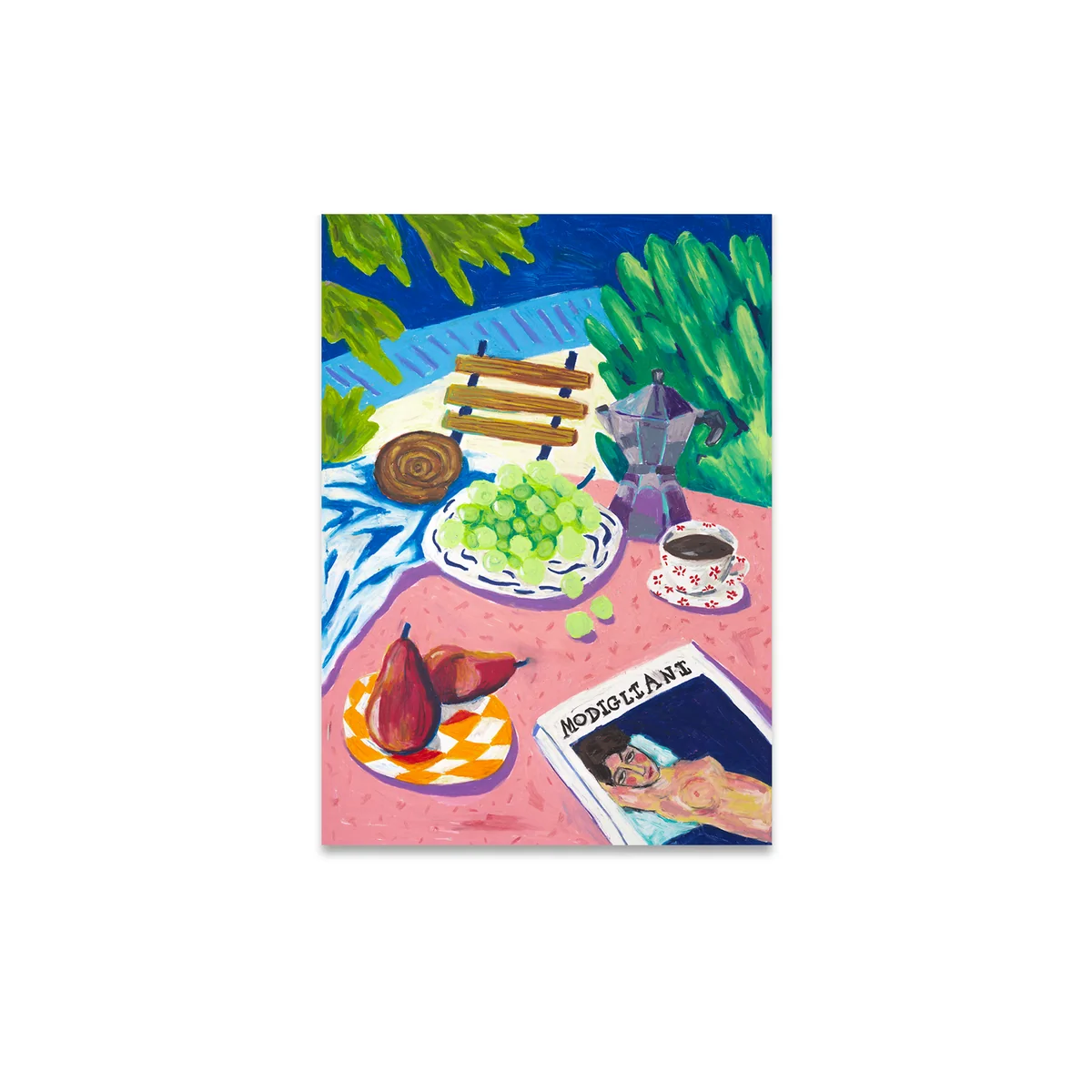 Das Paper Collective Modigliani in the Garden Poster ist ein atemberaubendes Kunstwerk, das dem ikonischen italienischen Künstler Amedeo Modigliani Tribut zollt. Das Poster verkörpert Modiglianis unverwechselbaren Stil mit einer frischen, zeitgenössischen Note und ist eine fesselnde Ergänzung für jede Kunstsammlung.